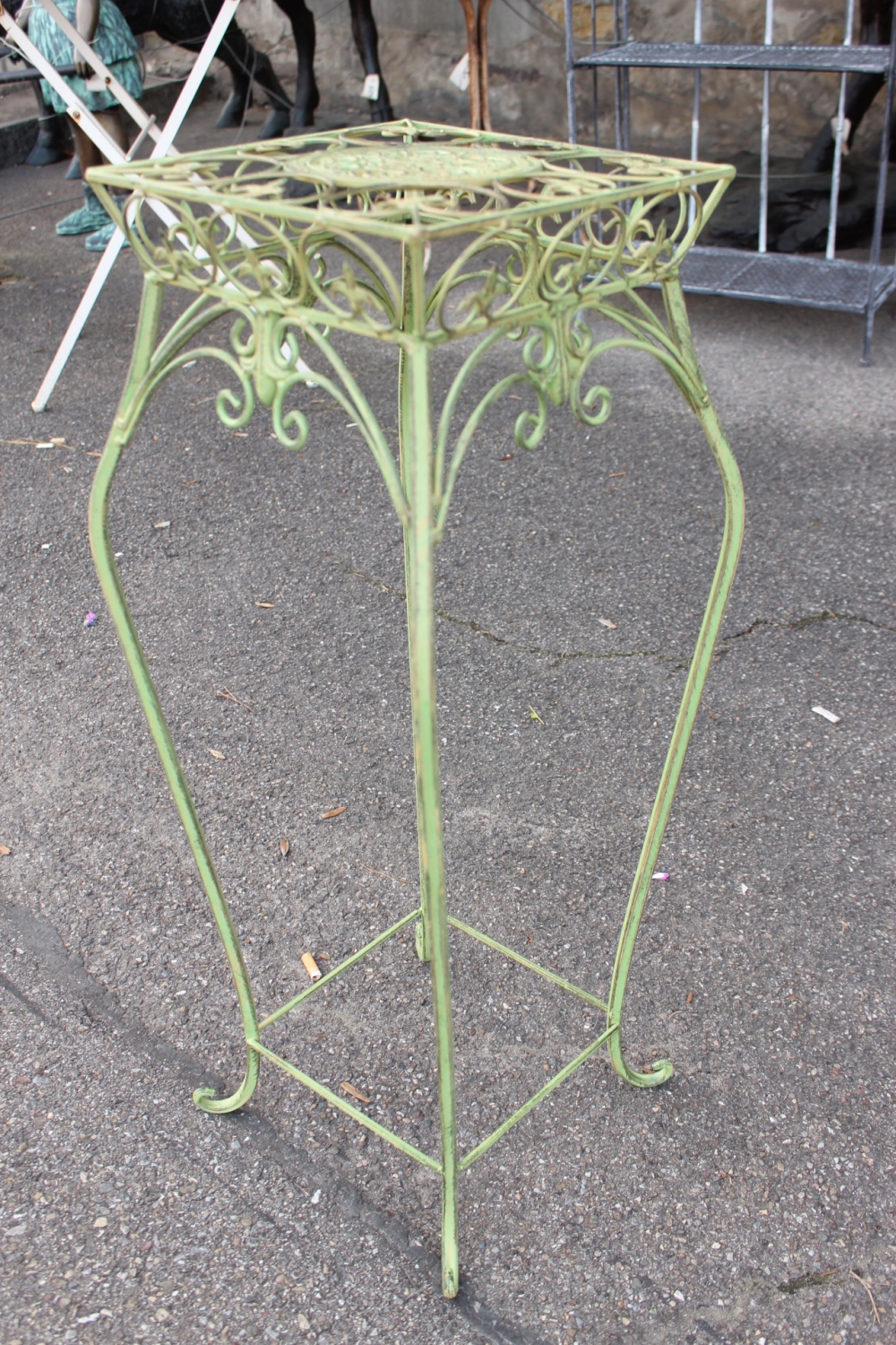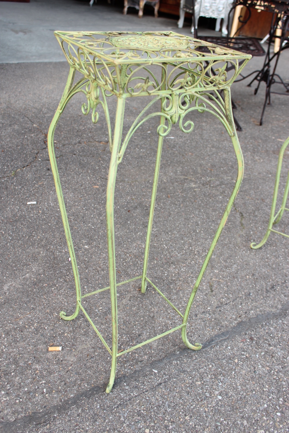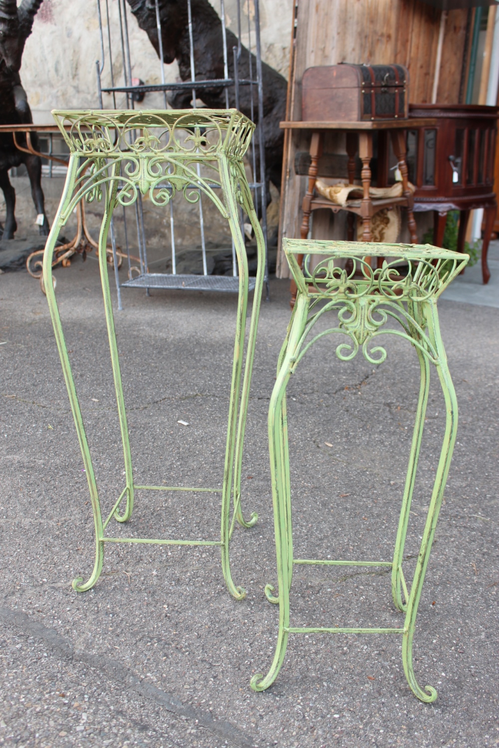 Massive verschnörkelte Eisen Blumenständerim antikgrün in zwei Grössen.ausverkauft