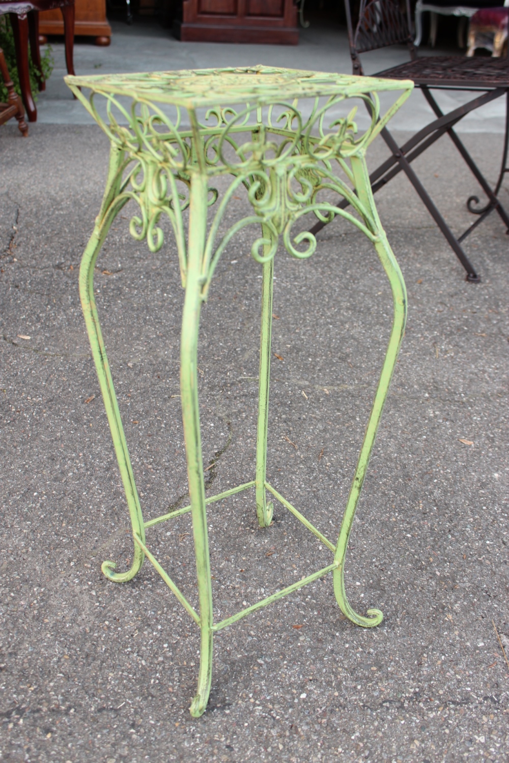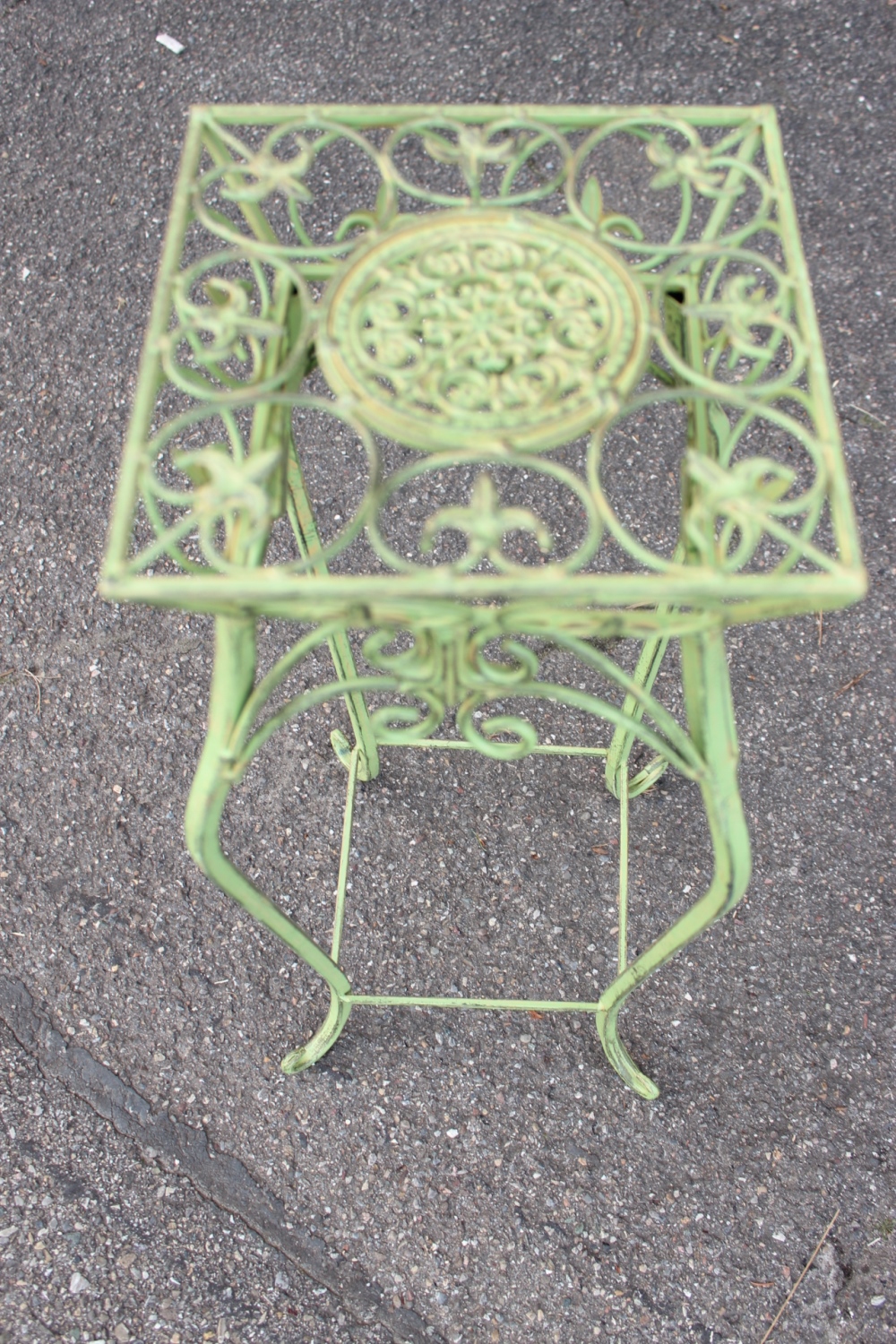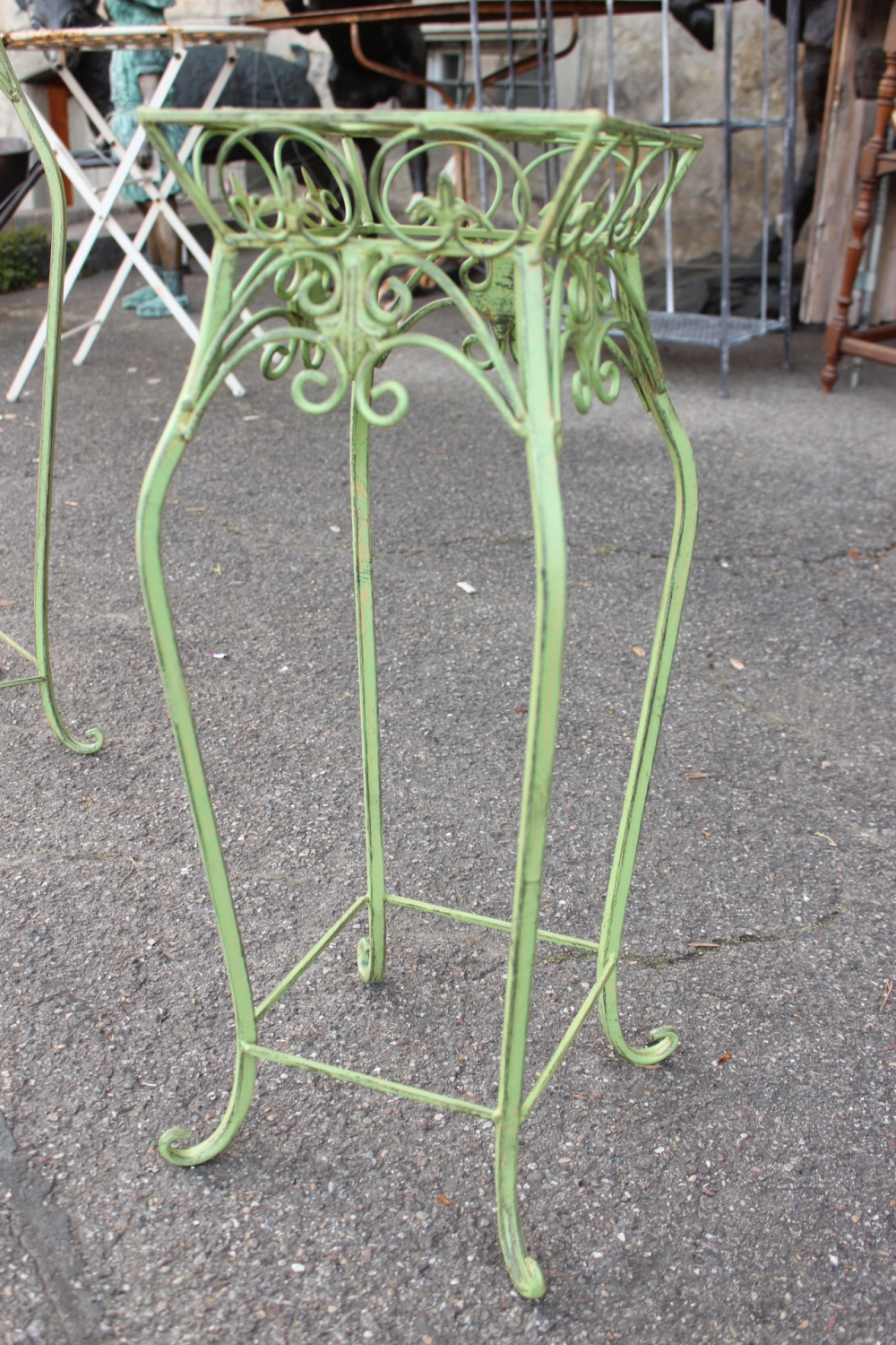 Massive verschnörkelte Eisen Blumenständerim antikgrün in zwei Grössen.ausverkauft