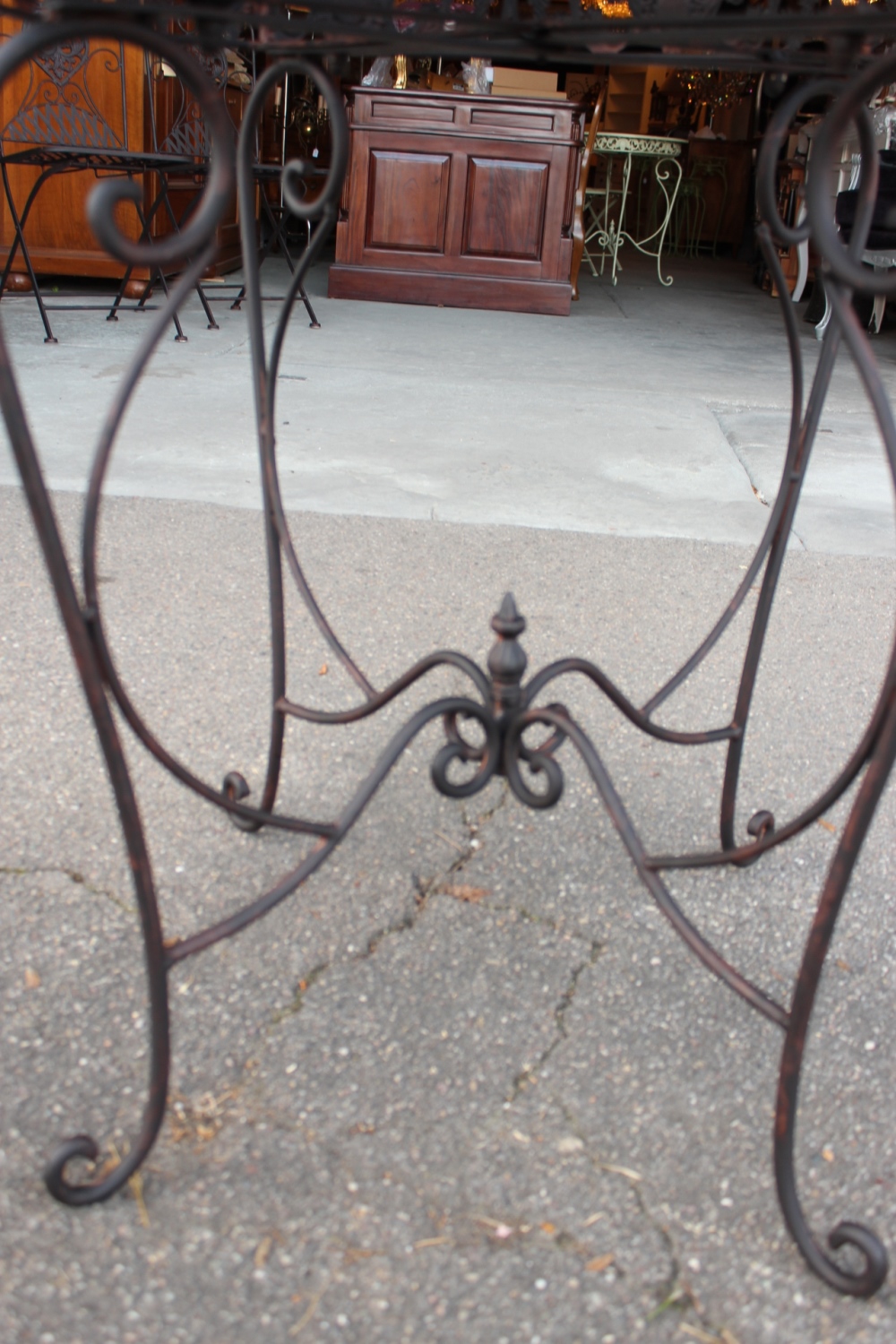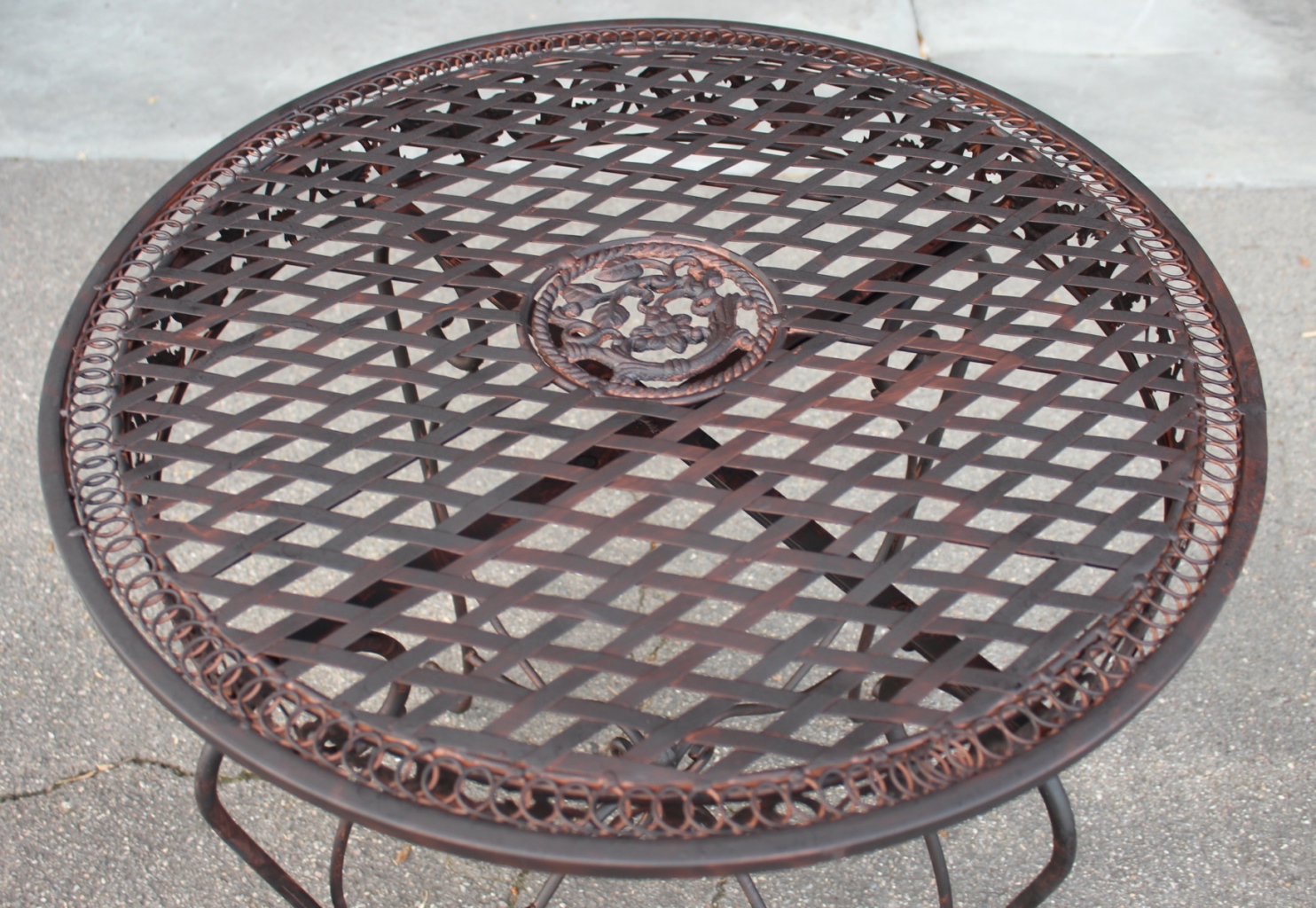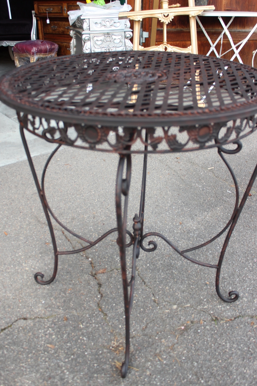 Massiver verschnörkelterEisen Gartentisch / Bistrotischdunkelbraun im Antiklook.