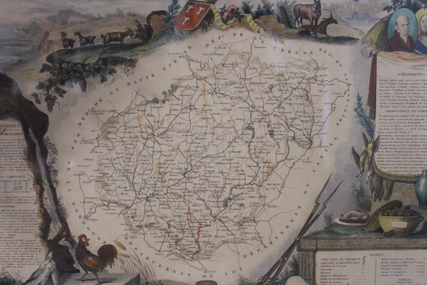 Alte Landkarte Département de la CorrèzeFrankreichin Gold-silbernem Rahmen