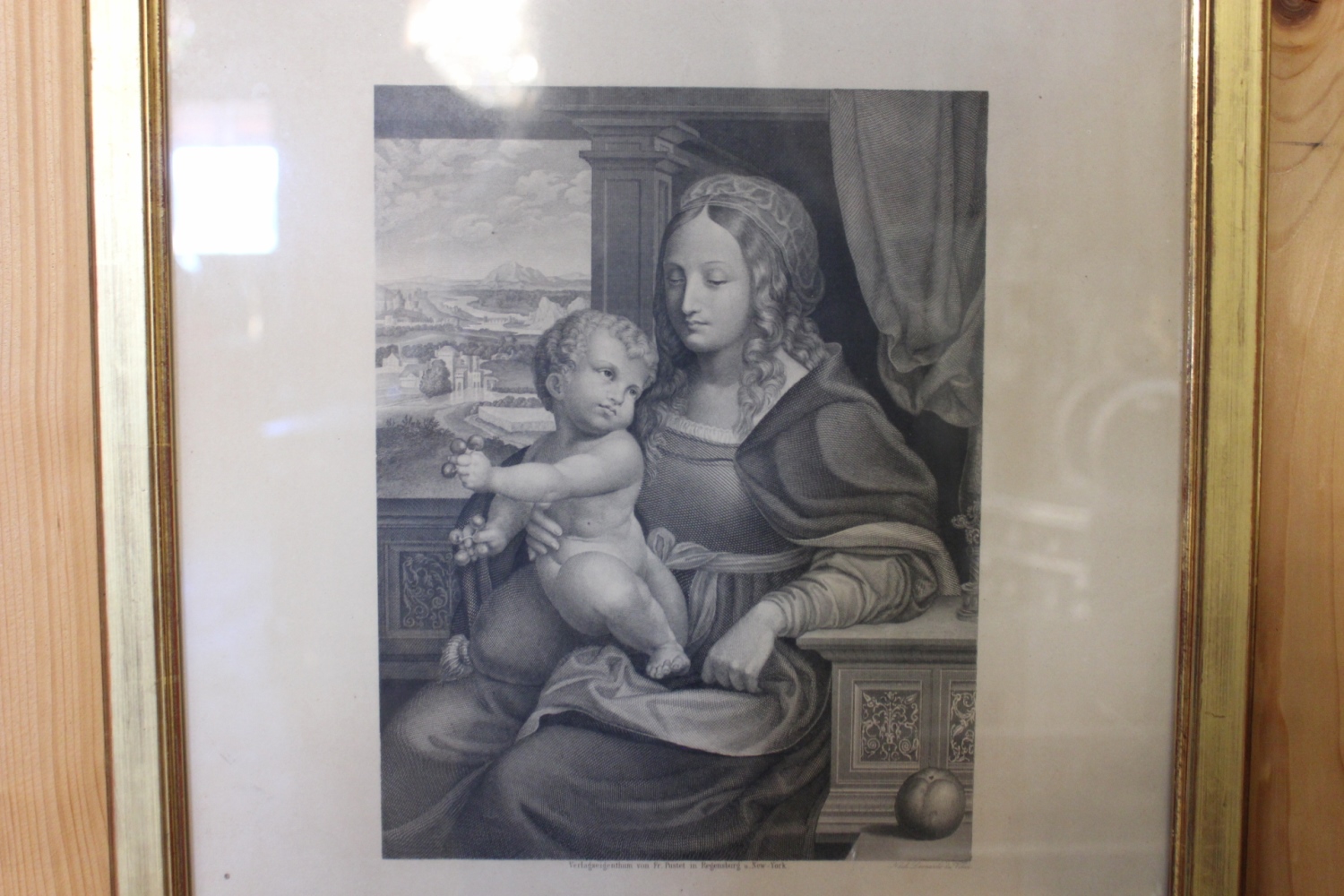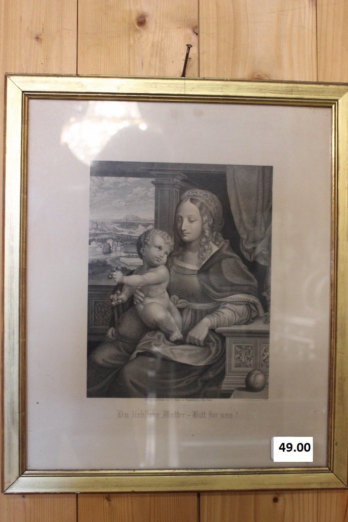 Antiker Stich schwarz-weiss in Goldrahmen"Mutter Gottes" (nach Leonardo da Vinci)