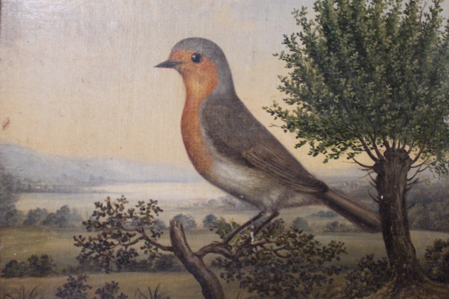 Rotkehlchen / Kunstmalereiin Goldrahmen. / verkauft
