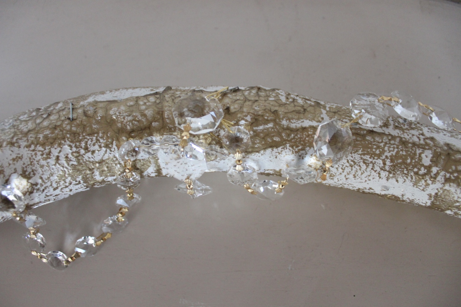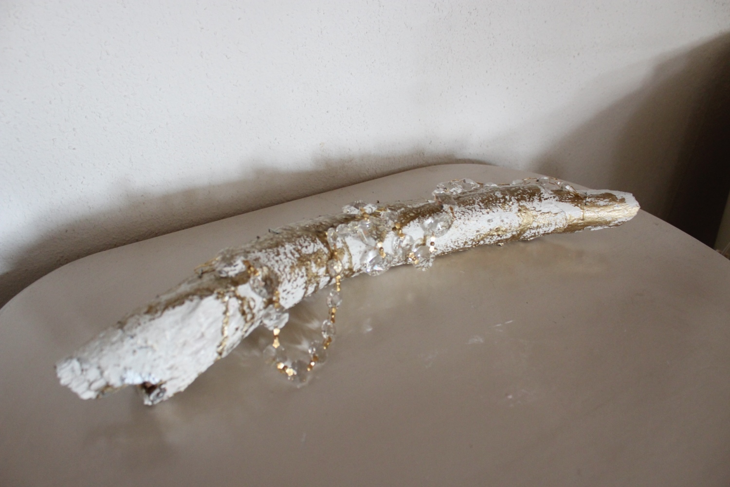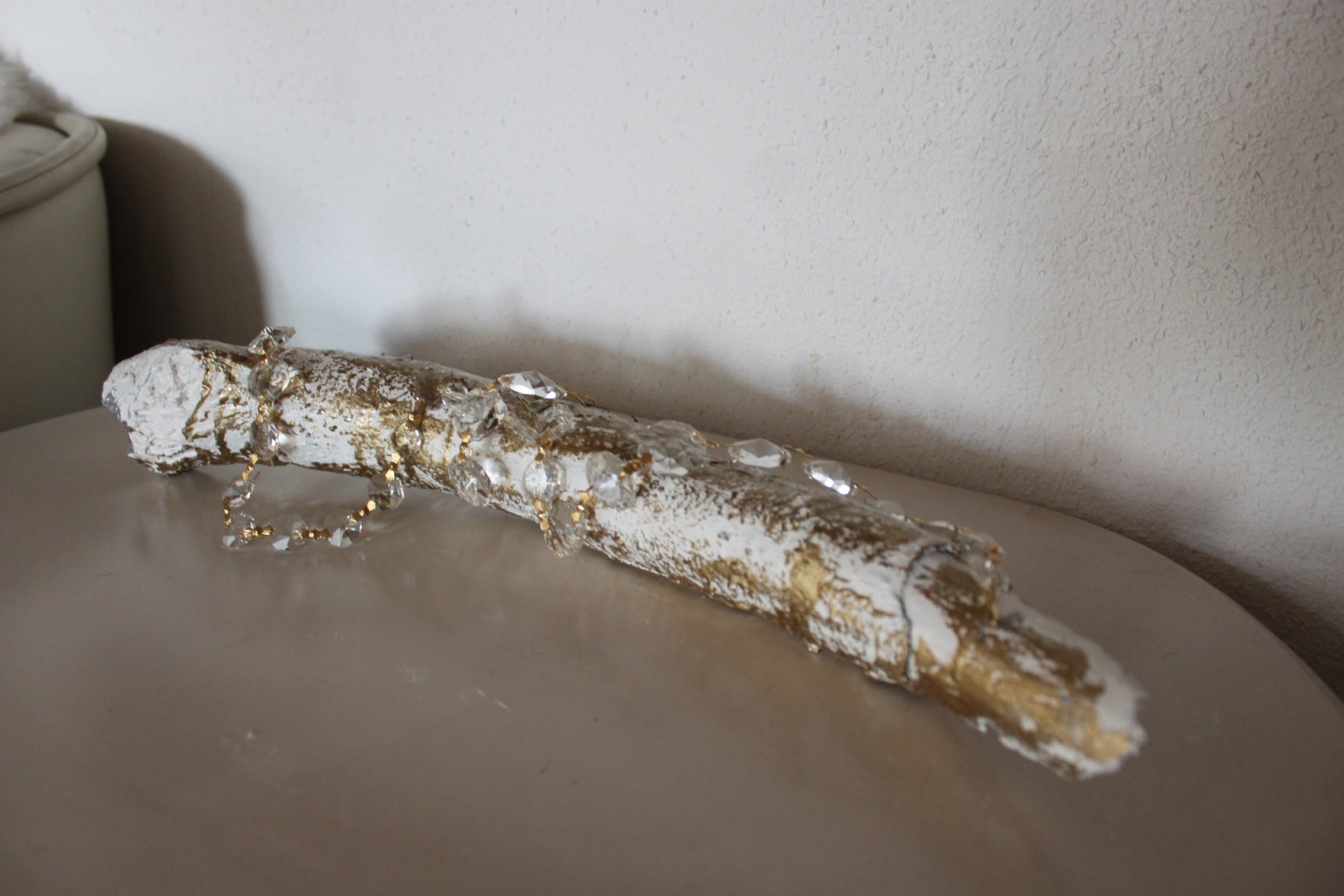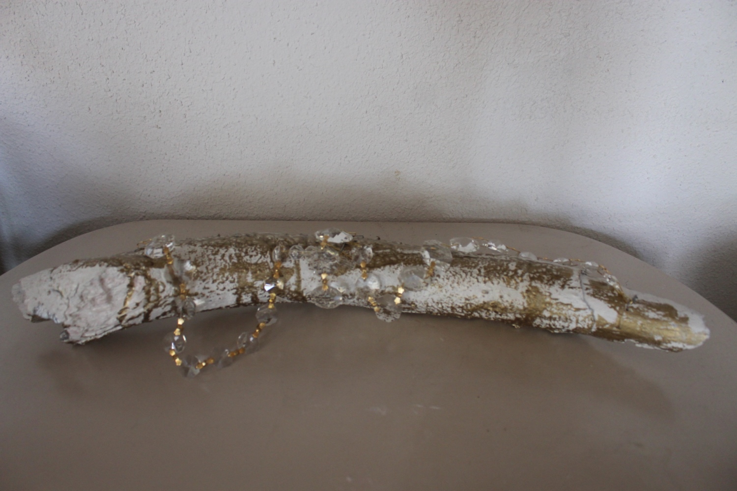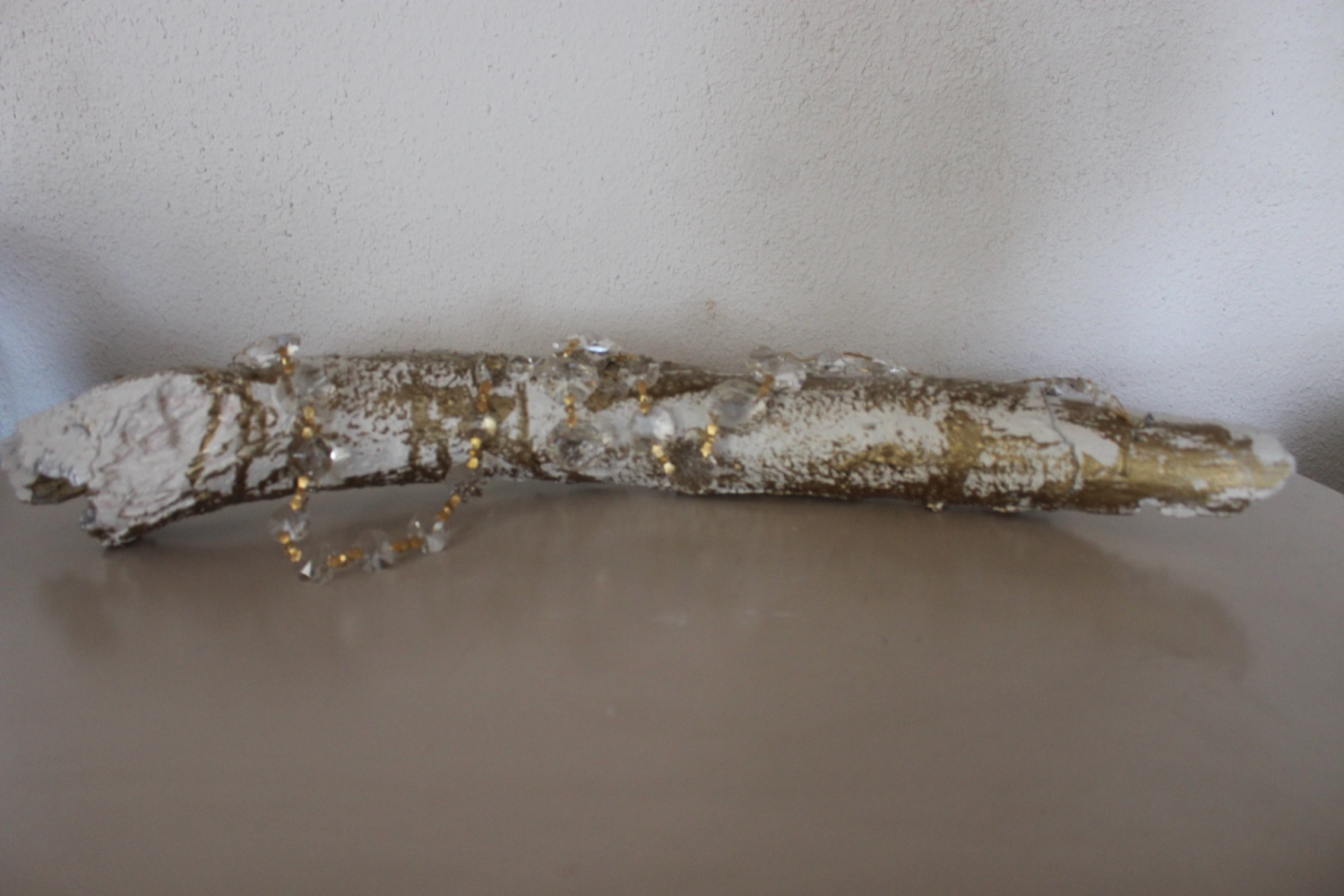 Holzwurzel Gold-weiss mit goldenen Kristallen