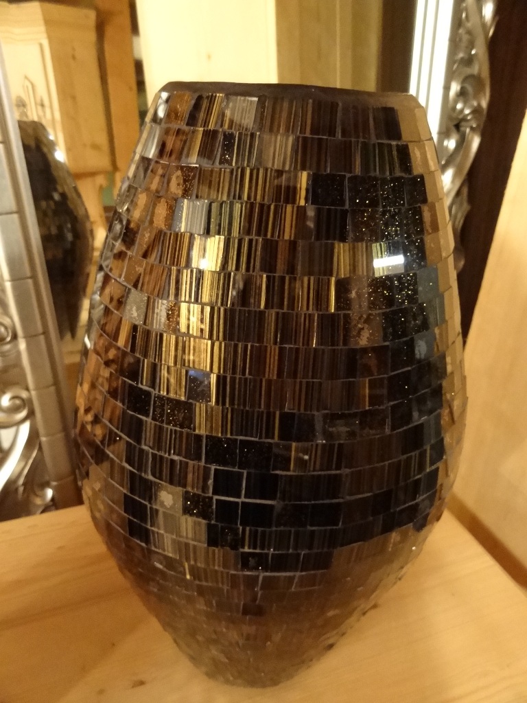 Vase Terra-Cottafinish in Spiegel-Mosaik schwarz.