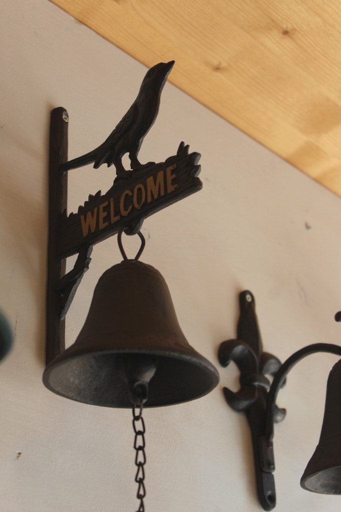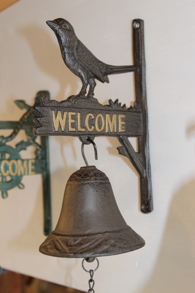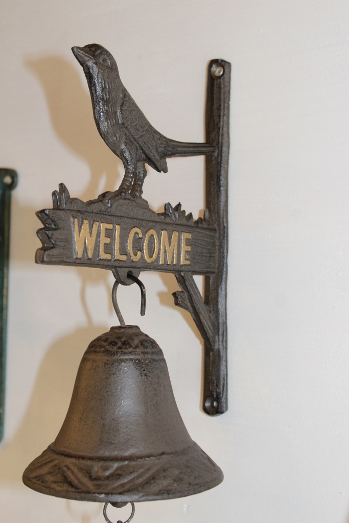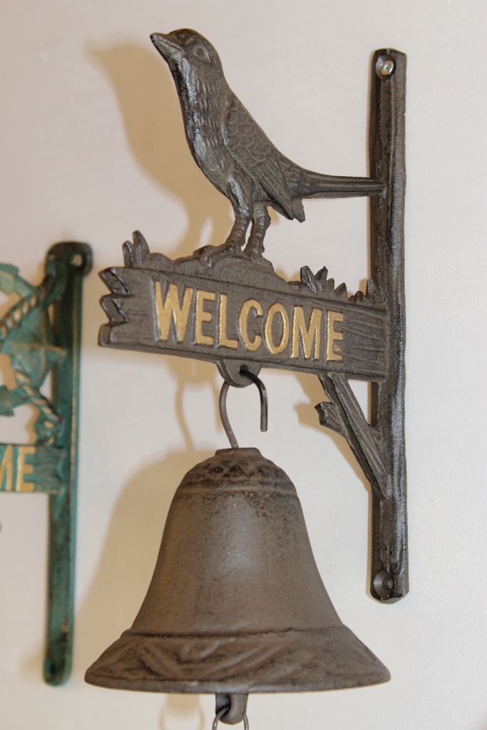 Hausglocke Welcome mit Vogel, massiv Eisen.