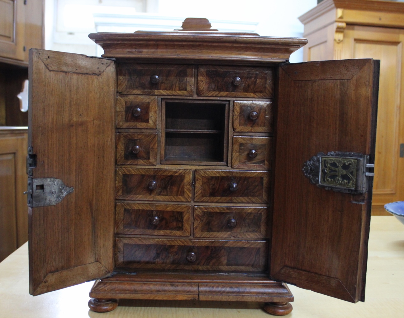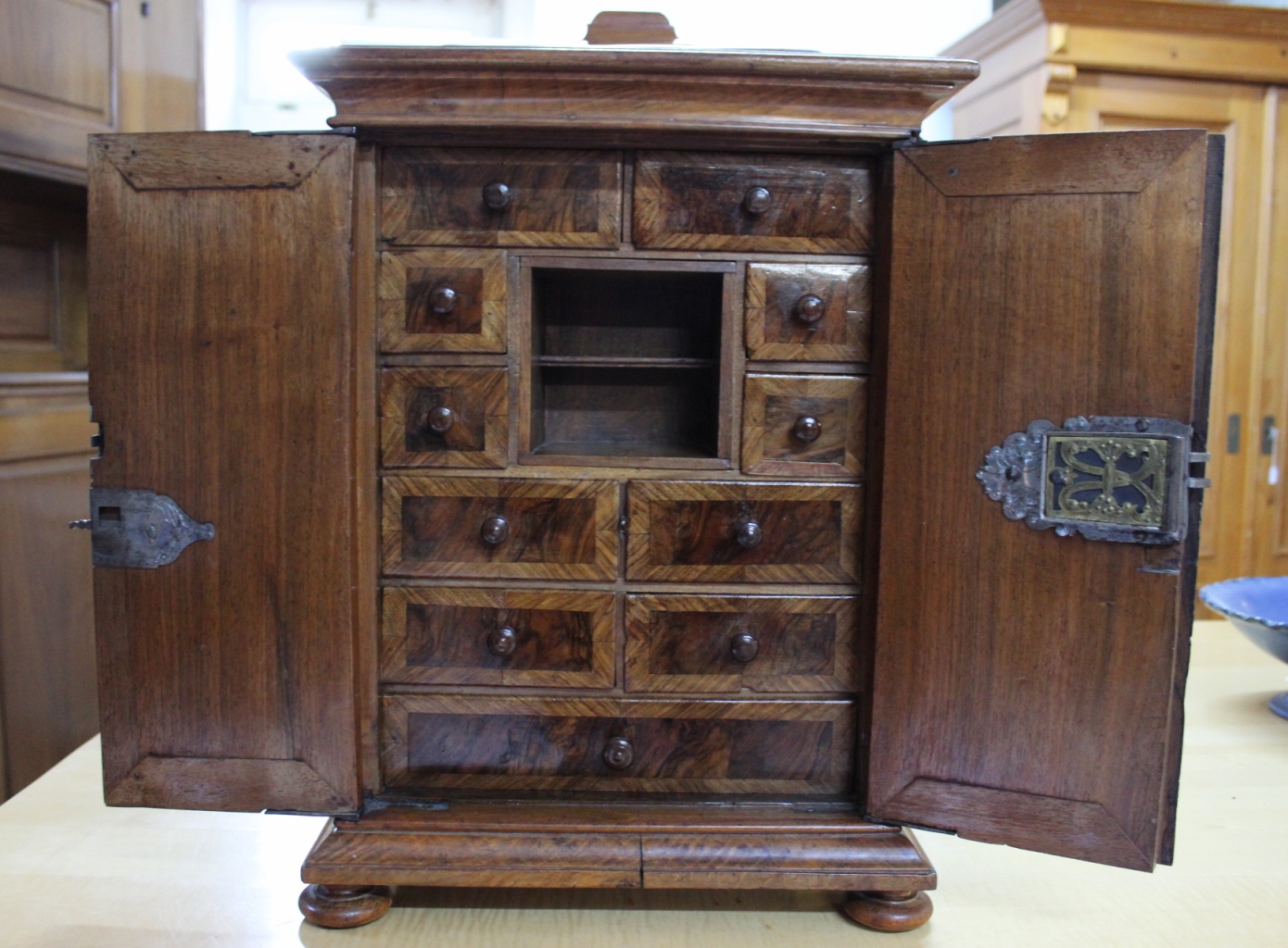 sowie weitere 11 sehr kunstvoll furnierte Schubladen.