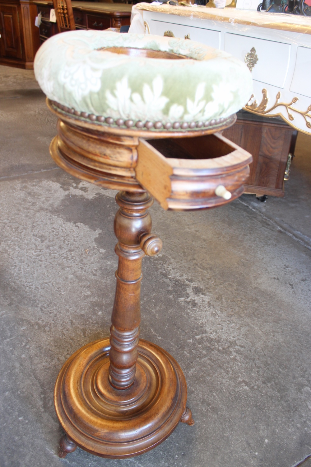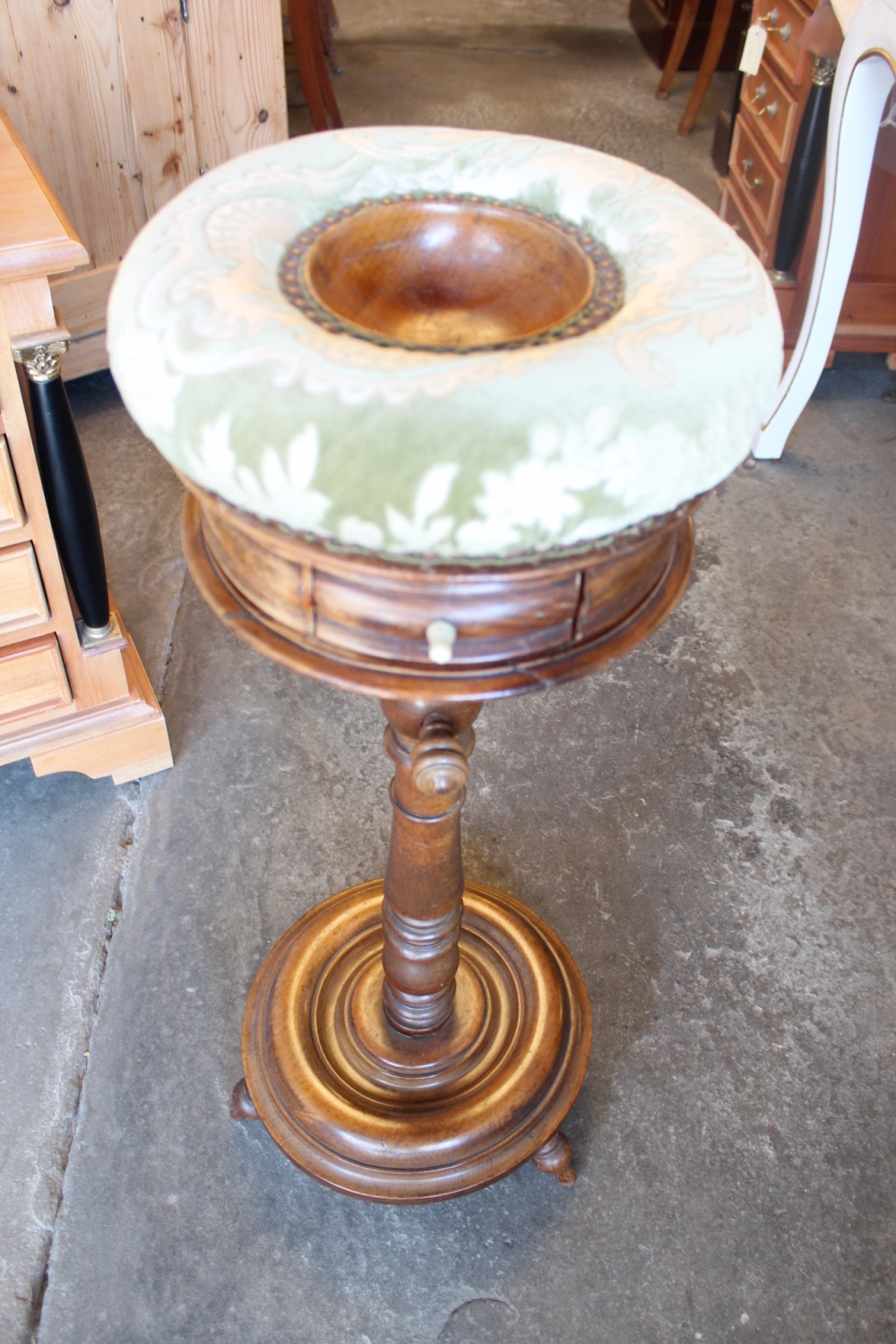 Antikes Nähtischli Louis Philippemit einer Schublade,massiv Nussbaum mit neuwertigem Stoff.