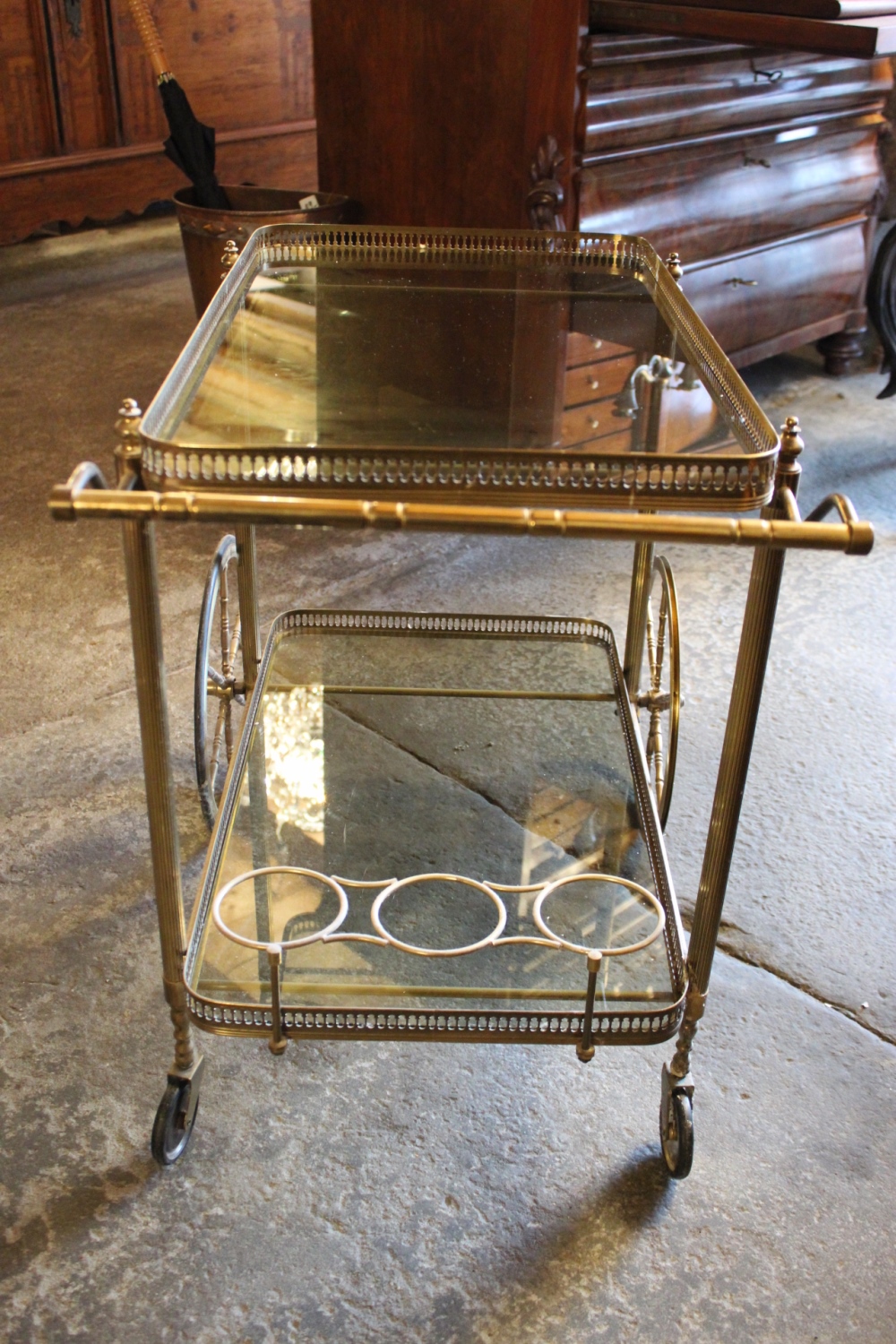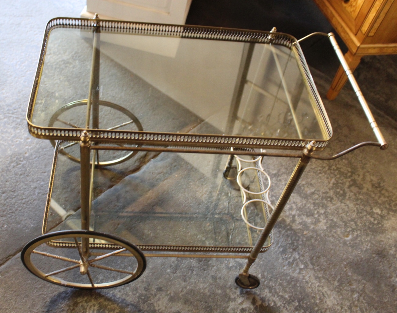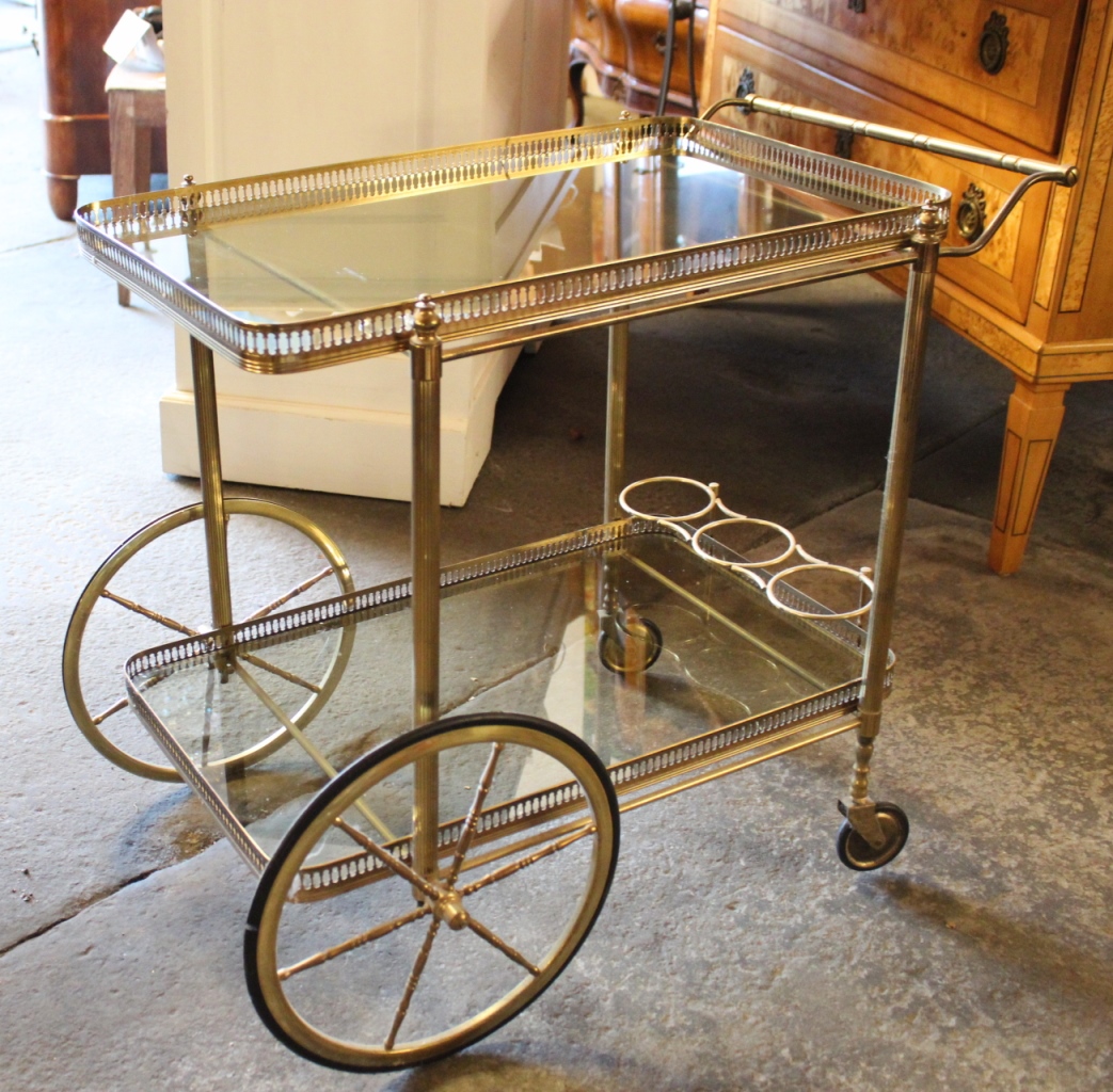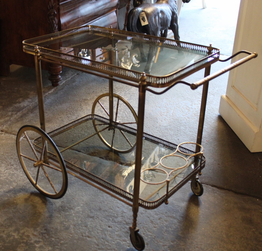 Teewagen / ServierwagenMessing mit Glaseinlagen.