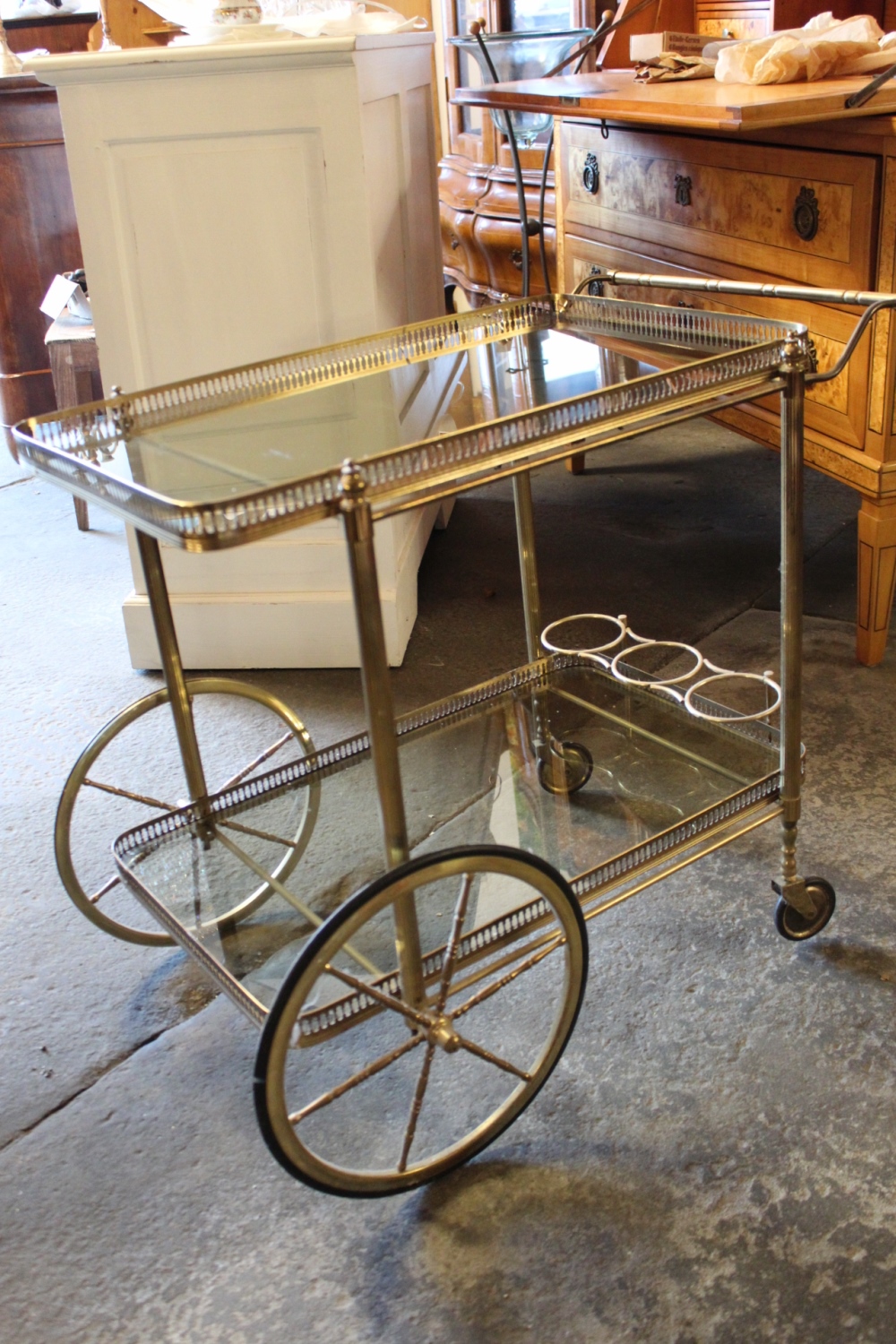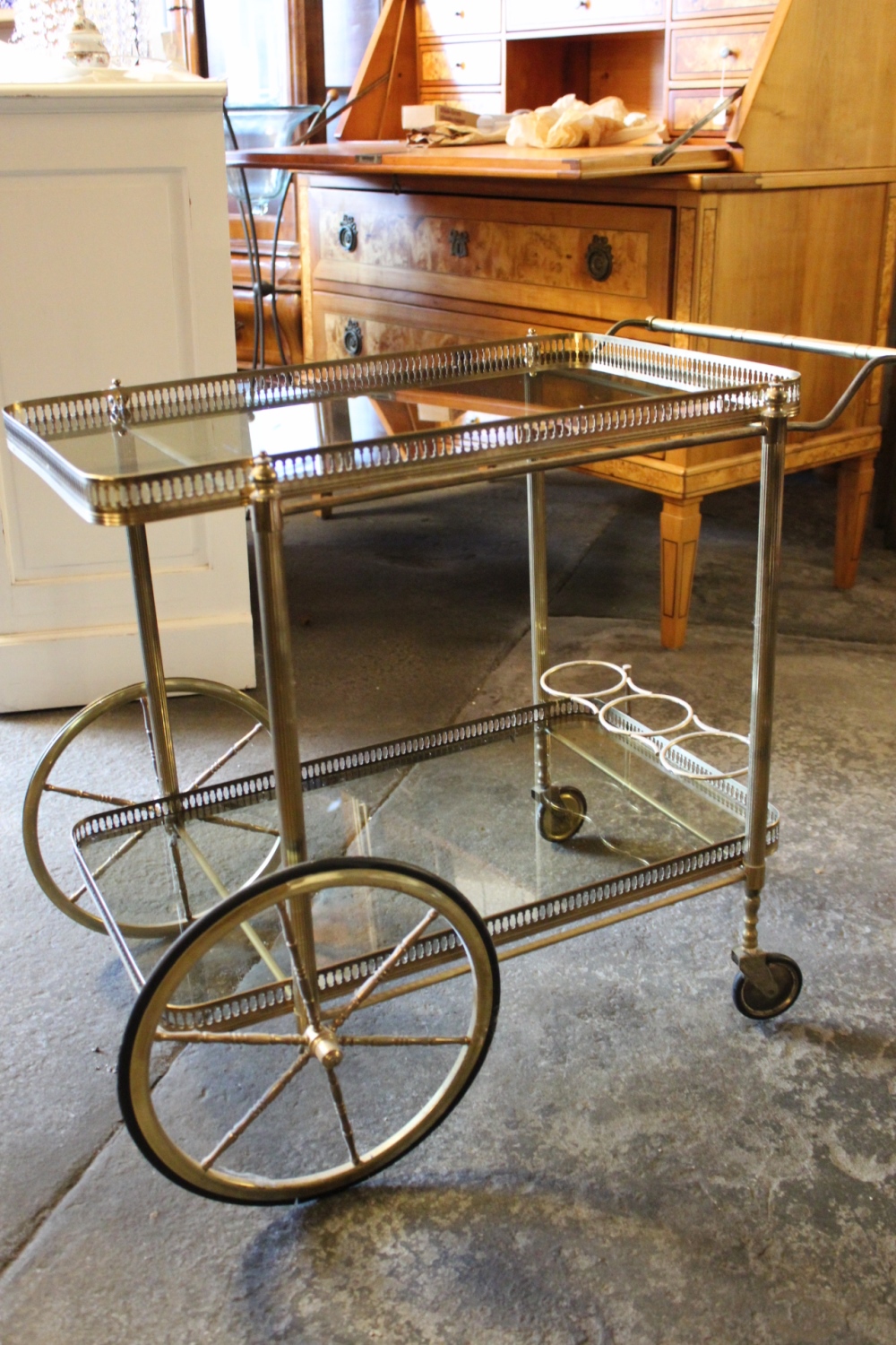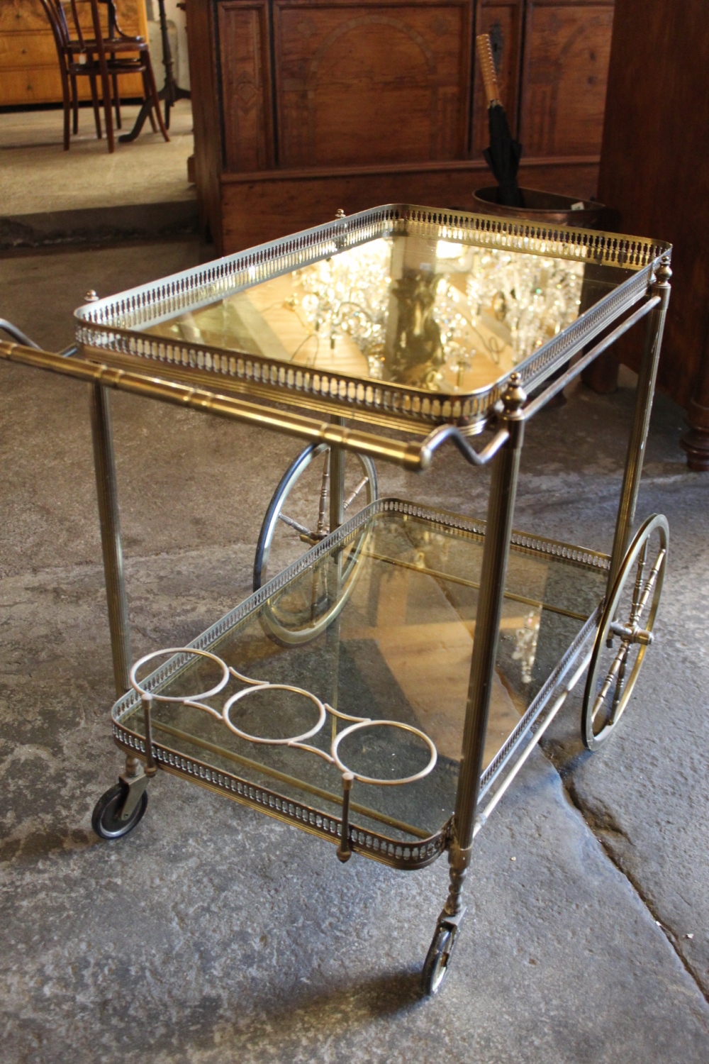 Teewagen / ServierwagenMessing mit Glaseinlagen.
