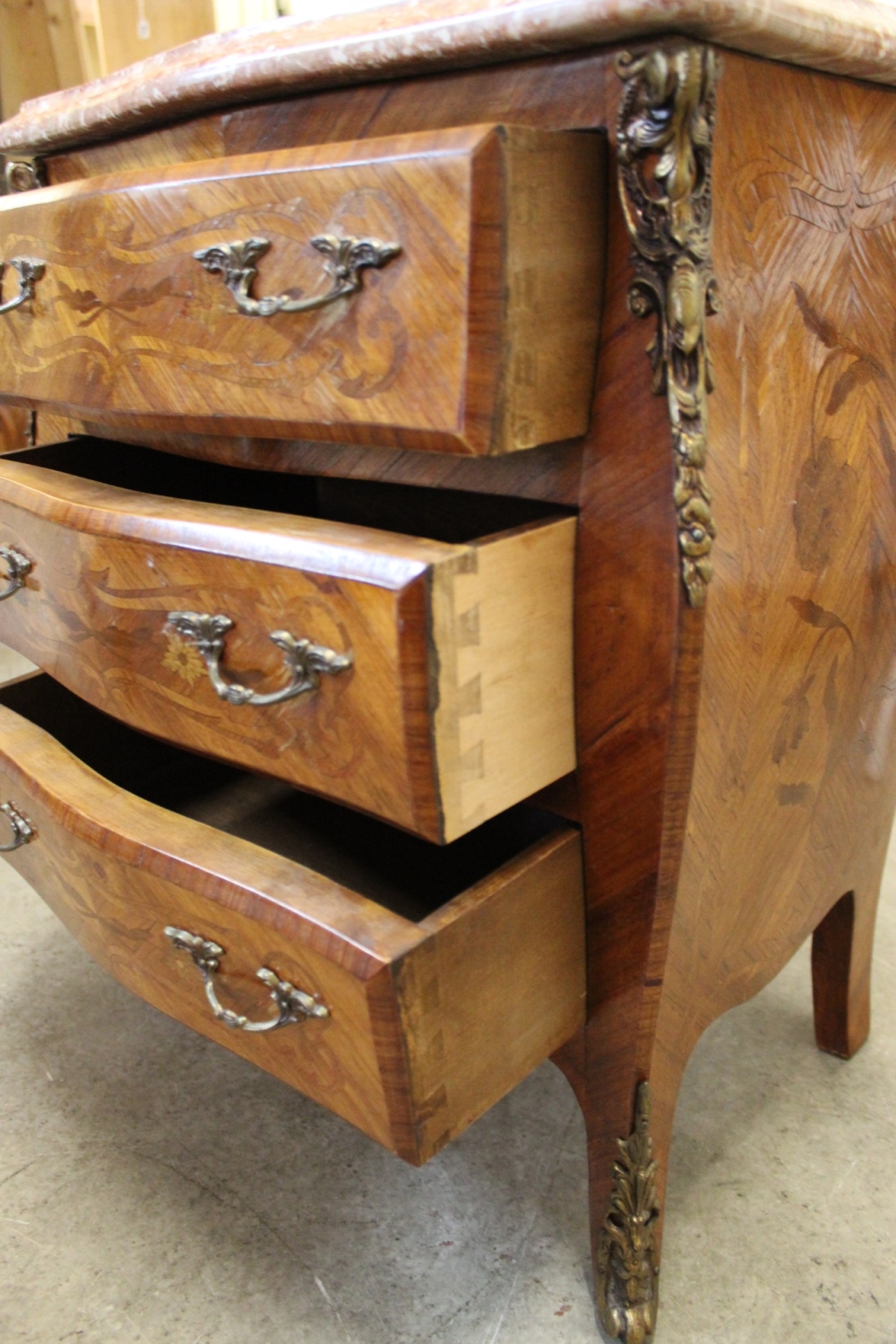 Barockkommode mit Marmorplatte / Nussbaum