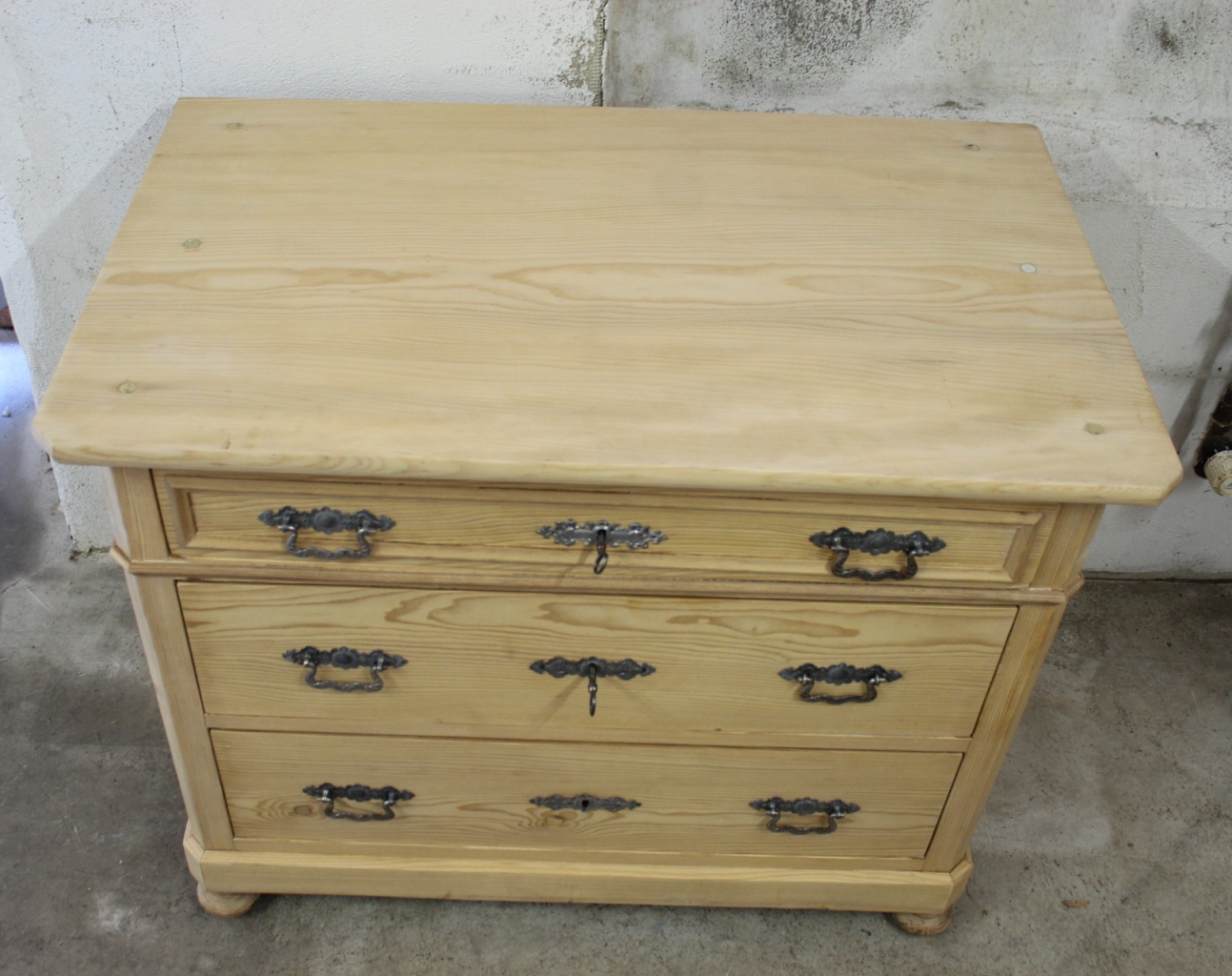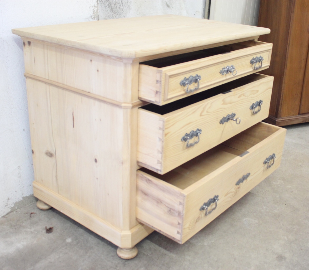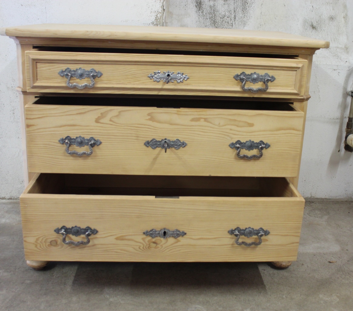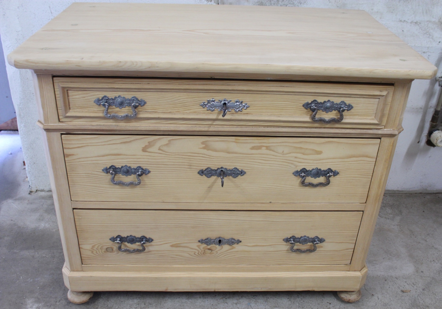 Auf der rechten Seite hat die Kommode einen schmalen Riss.