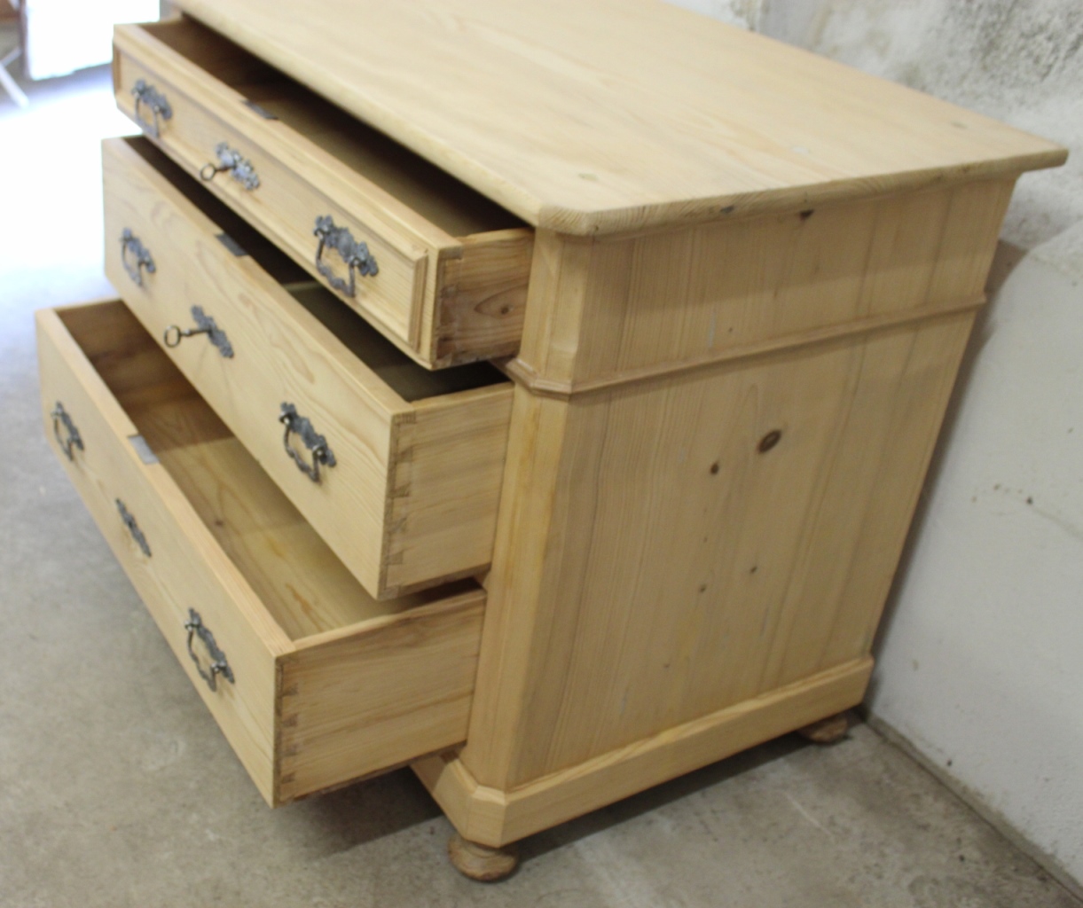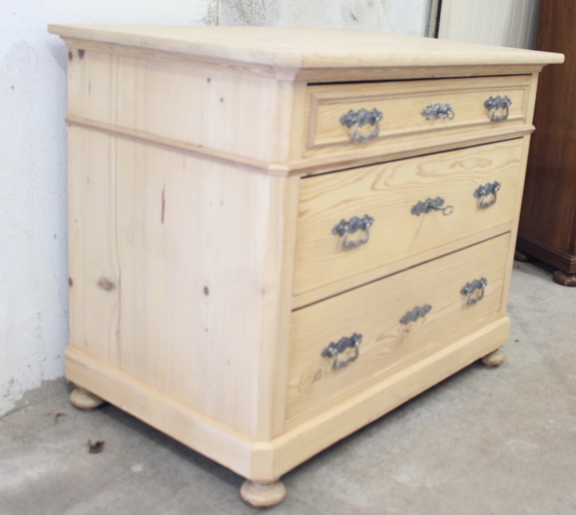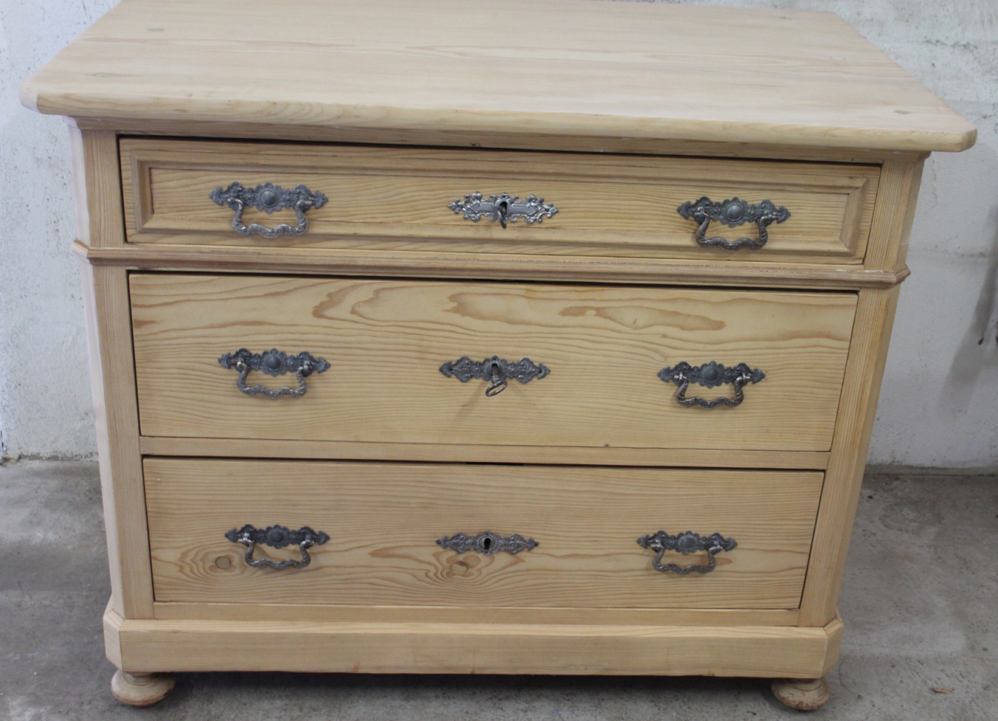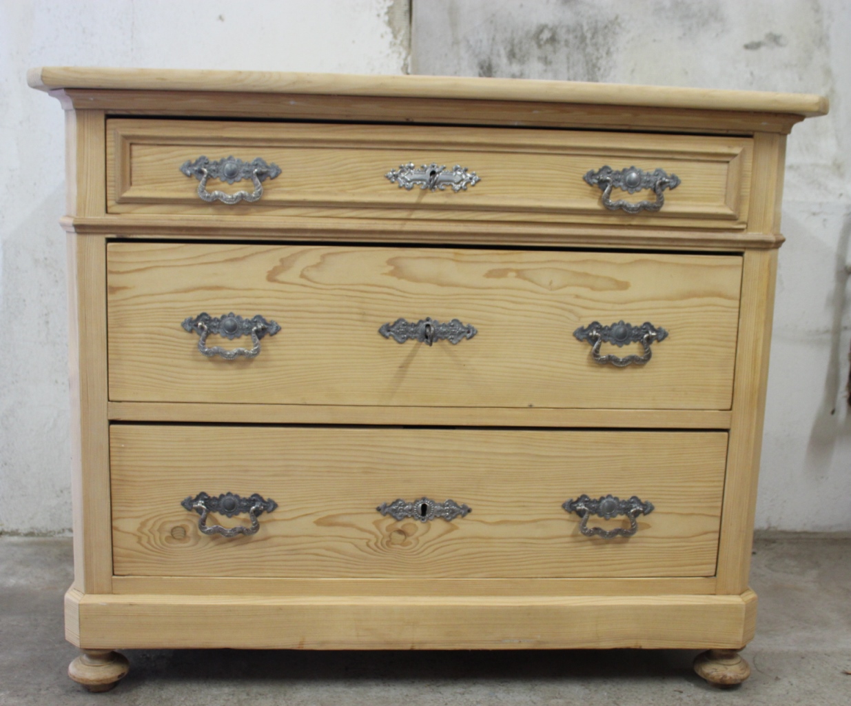 Auf der rechten Seite hat die Kommode einen schmalen Riss.