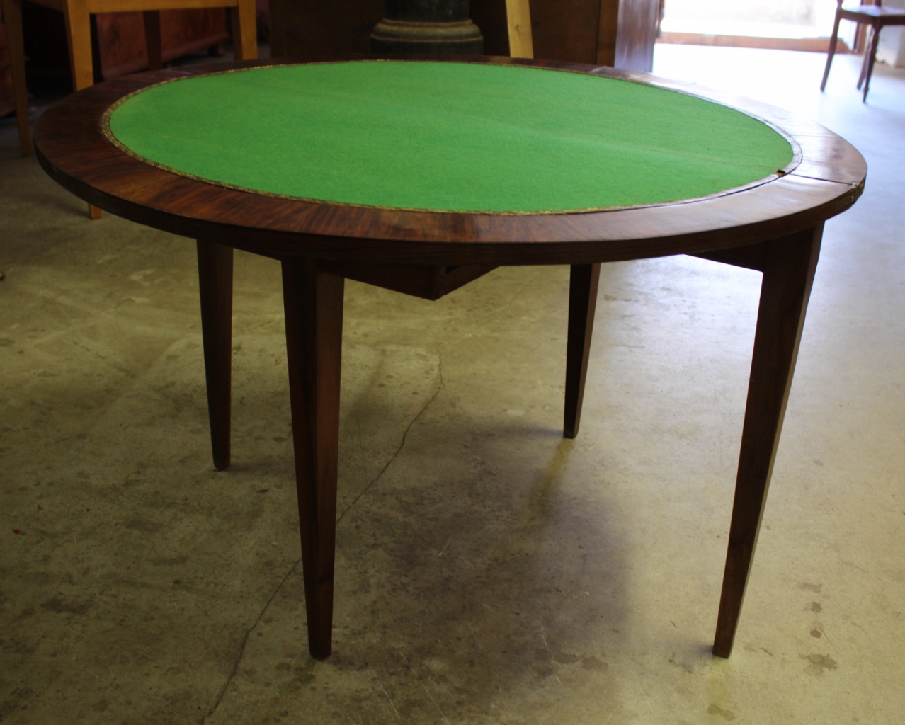 Aufgeklappt als runder Spieltisch.