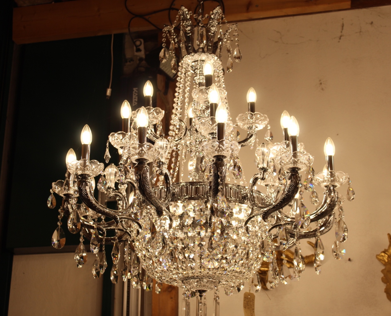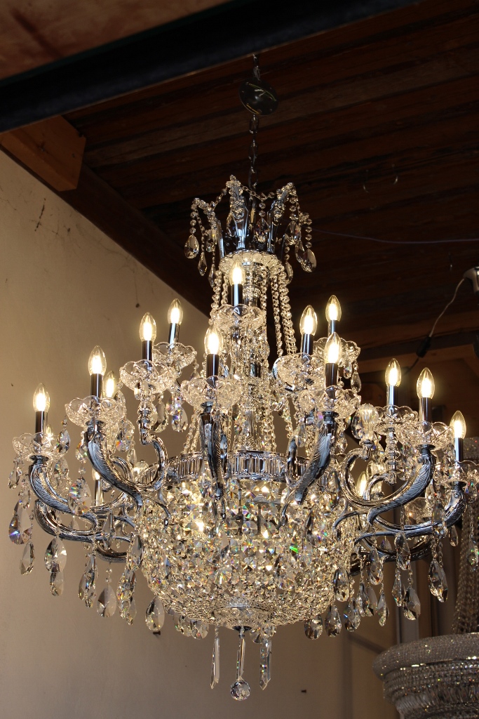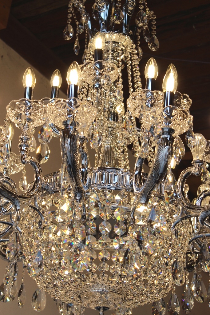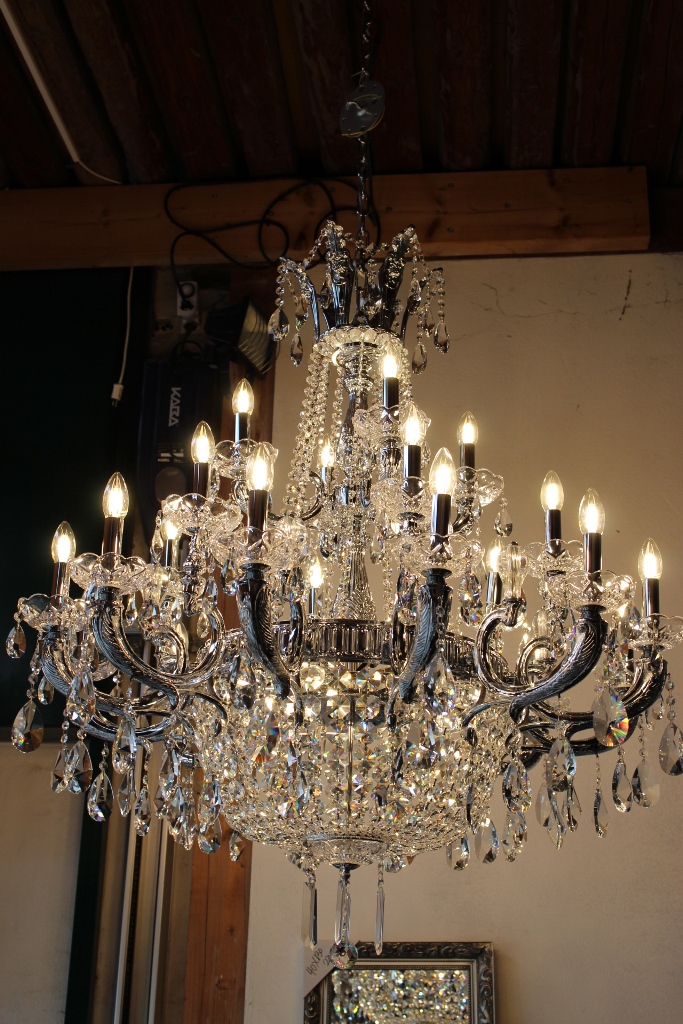 Der Kronleuchter ist fertig montiert, elektrifiziert
