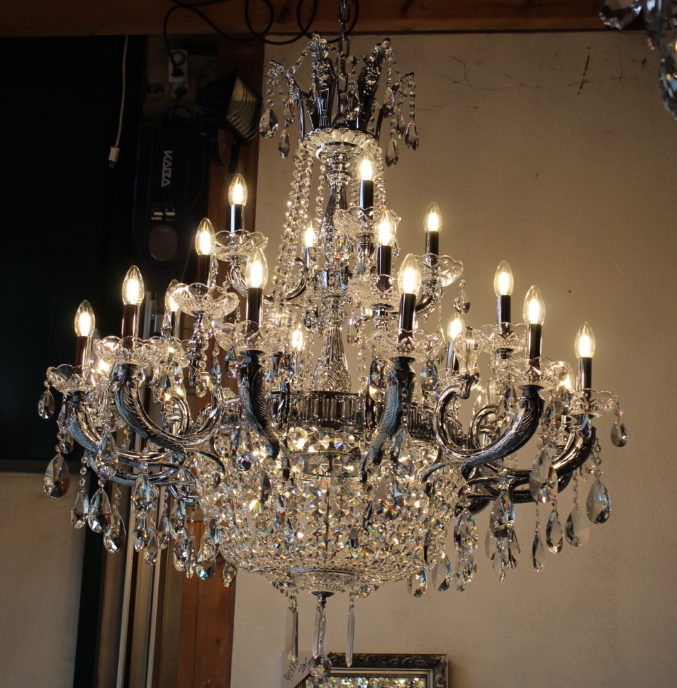 mit unzählig funkelnden Bleikristallen behangen.