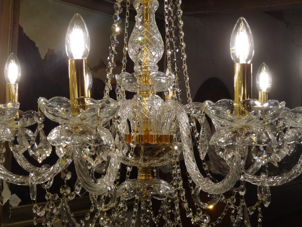 mit unzählig, funkelnden Bleikristallen behangen.