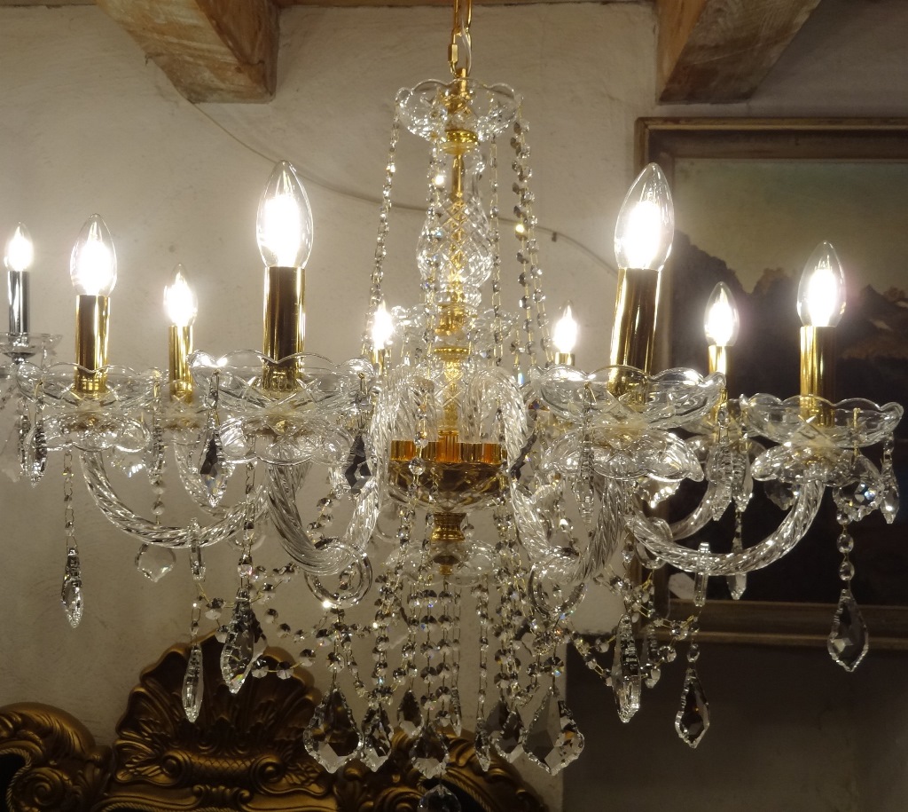 Kronleuchter Bleikristall Gold 64cm + Kette 8 Lichter