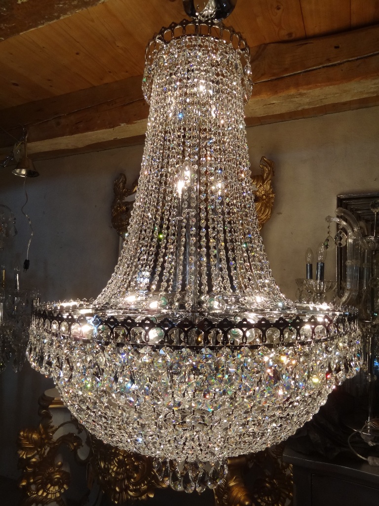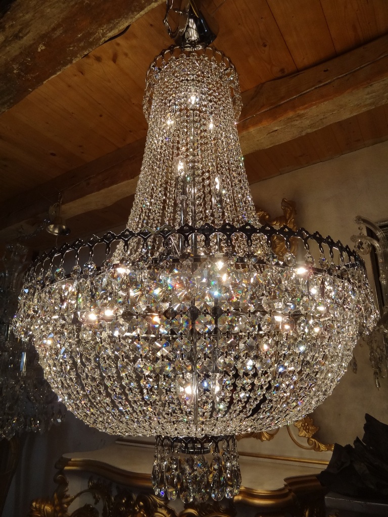 Grosser Bleikristall Kronleuchter / Lüster Silber
