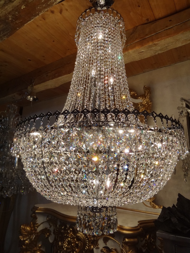 Der Kronleuchter kann auch fertig montiert, elektrifiziert