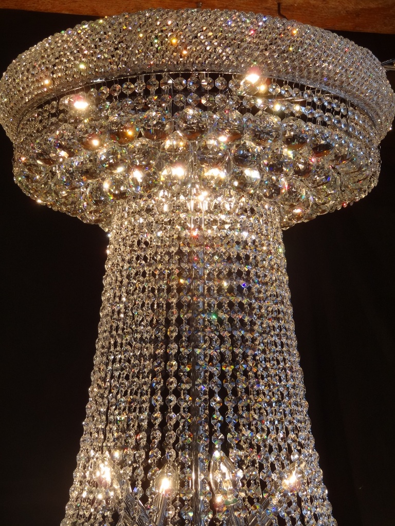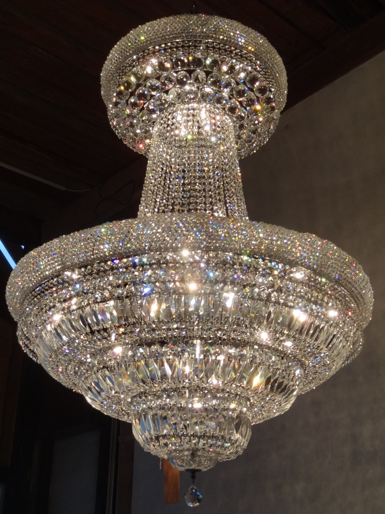 Der Kronleuchter kann auch fertig montiert, elektrifiziert