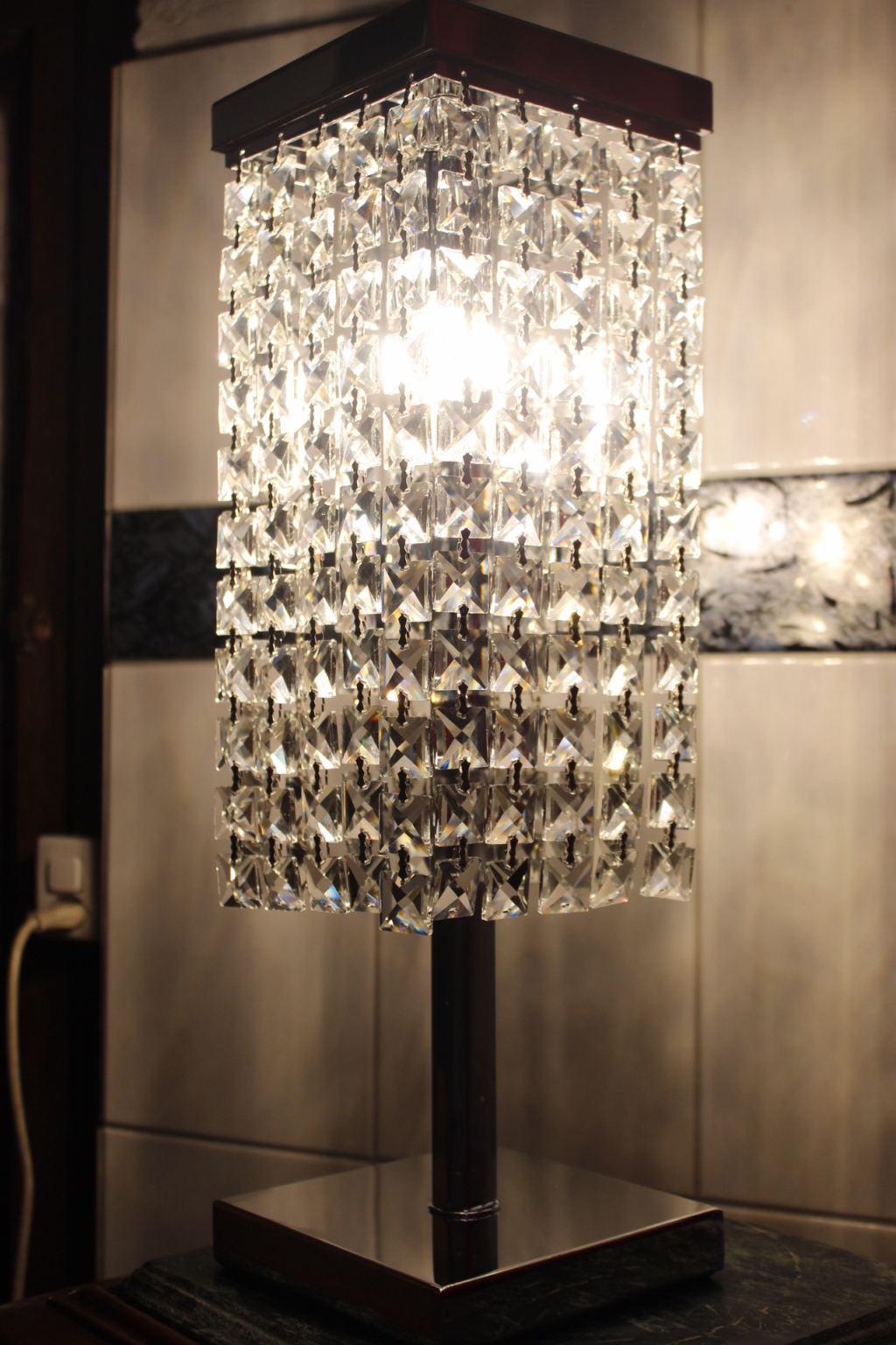 Insgesamt hat der Tischleuchter 2 Lichter, 220 Volt / 40 Watt