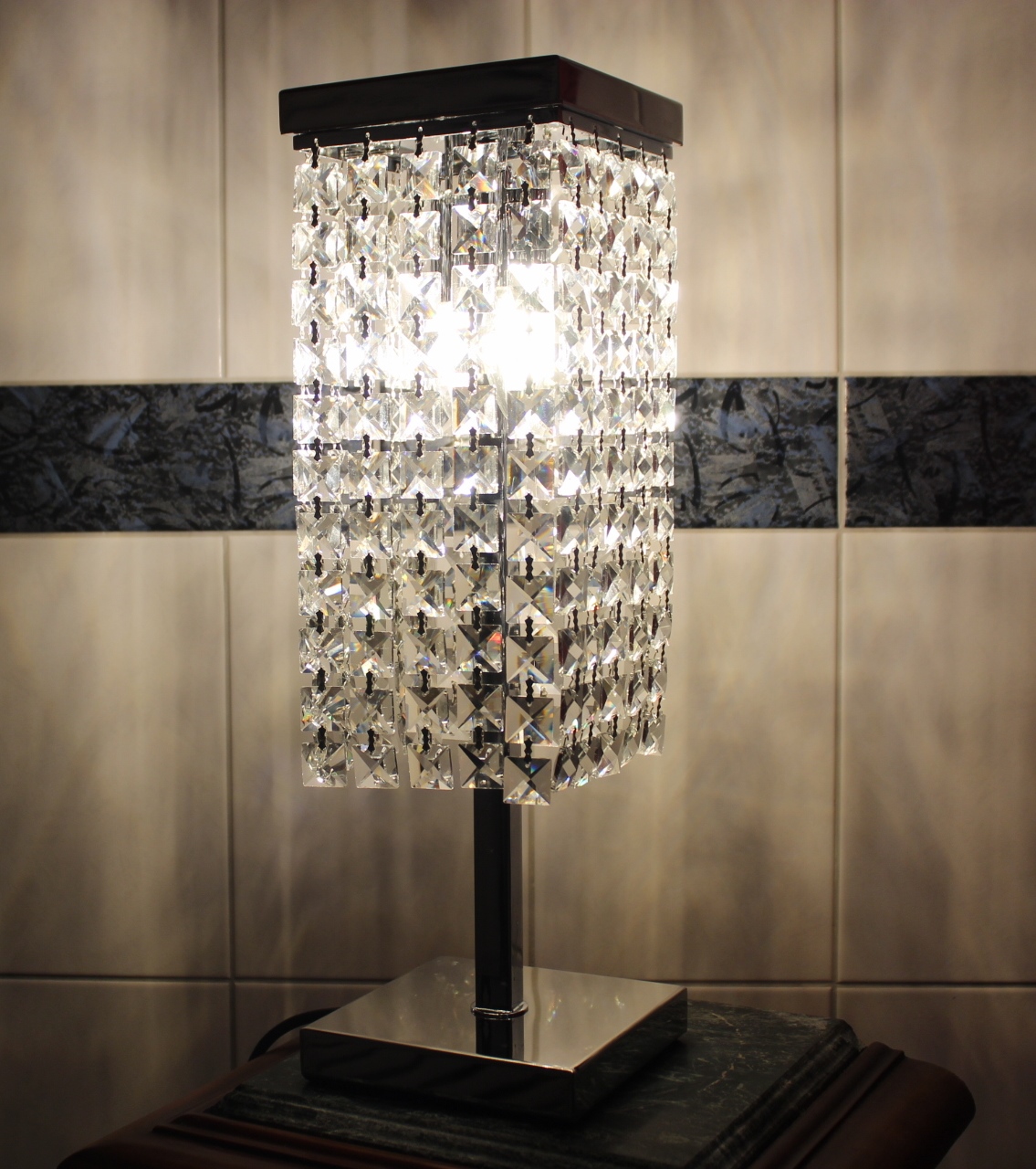 Tischleuchter Bleikristall / Nachttischlampe Silber , 2 Lichter