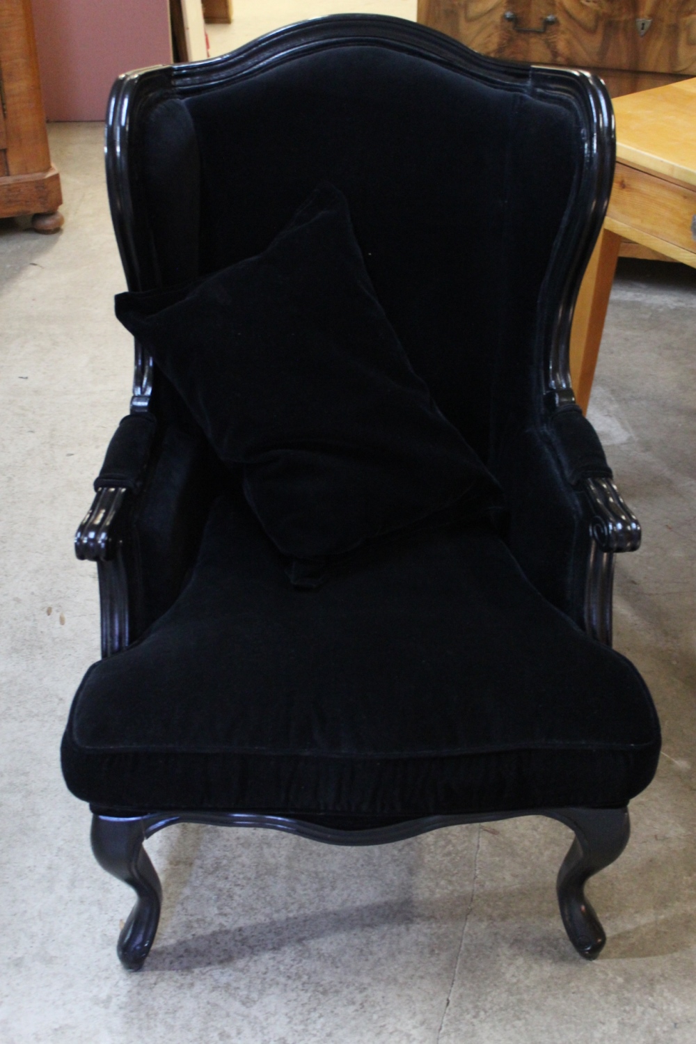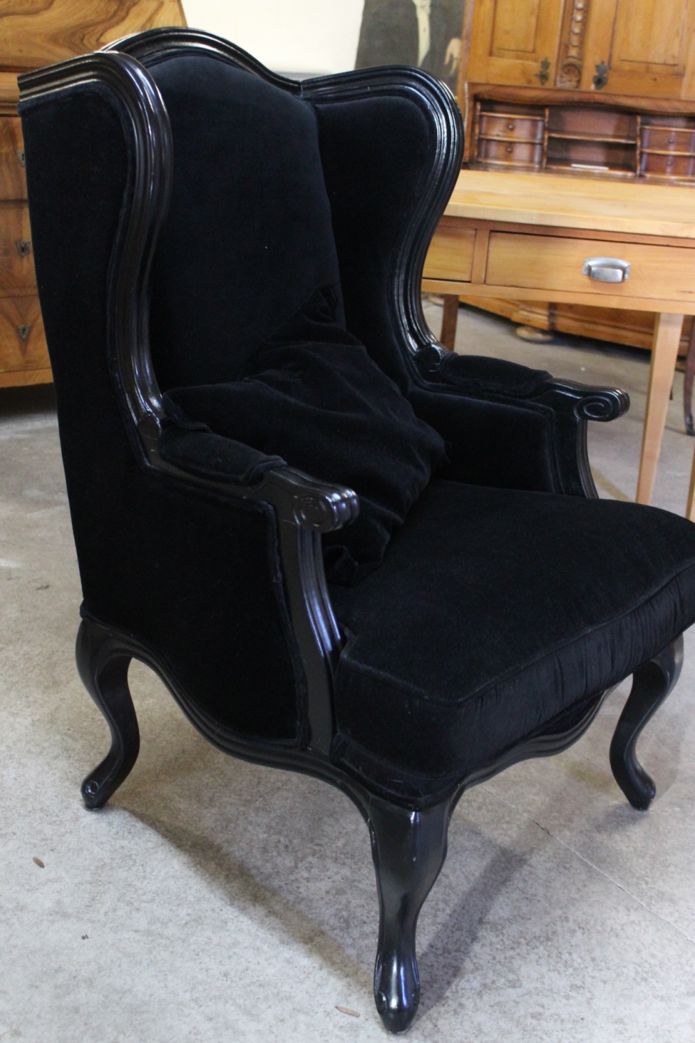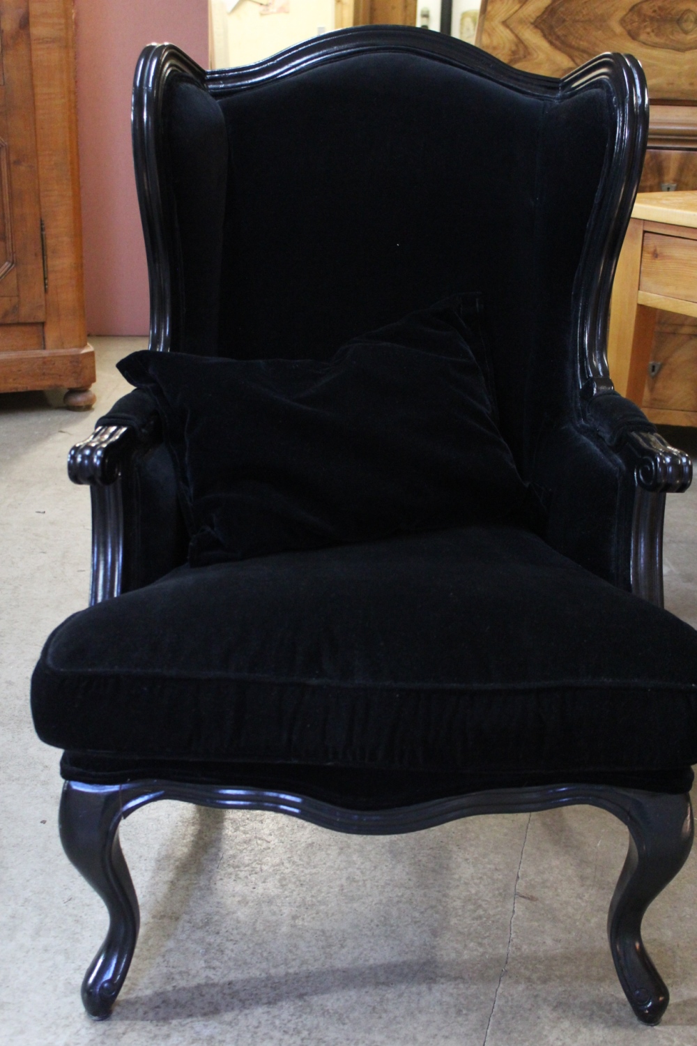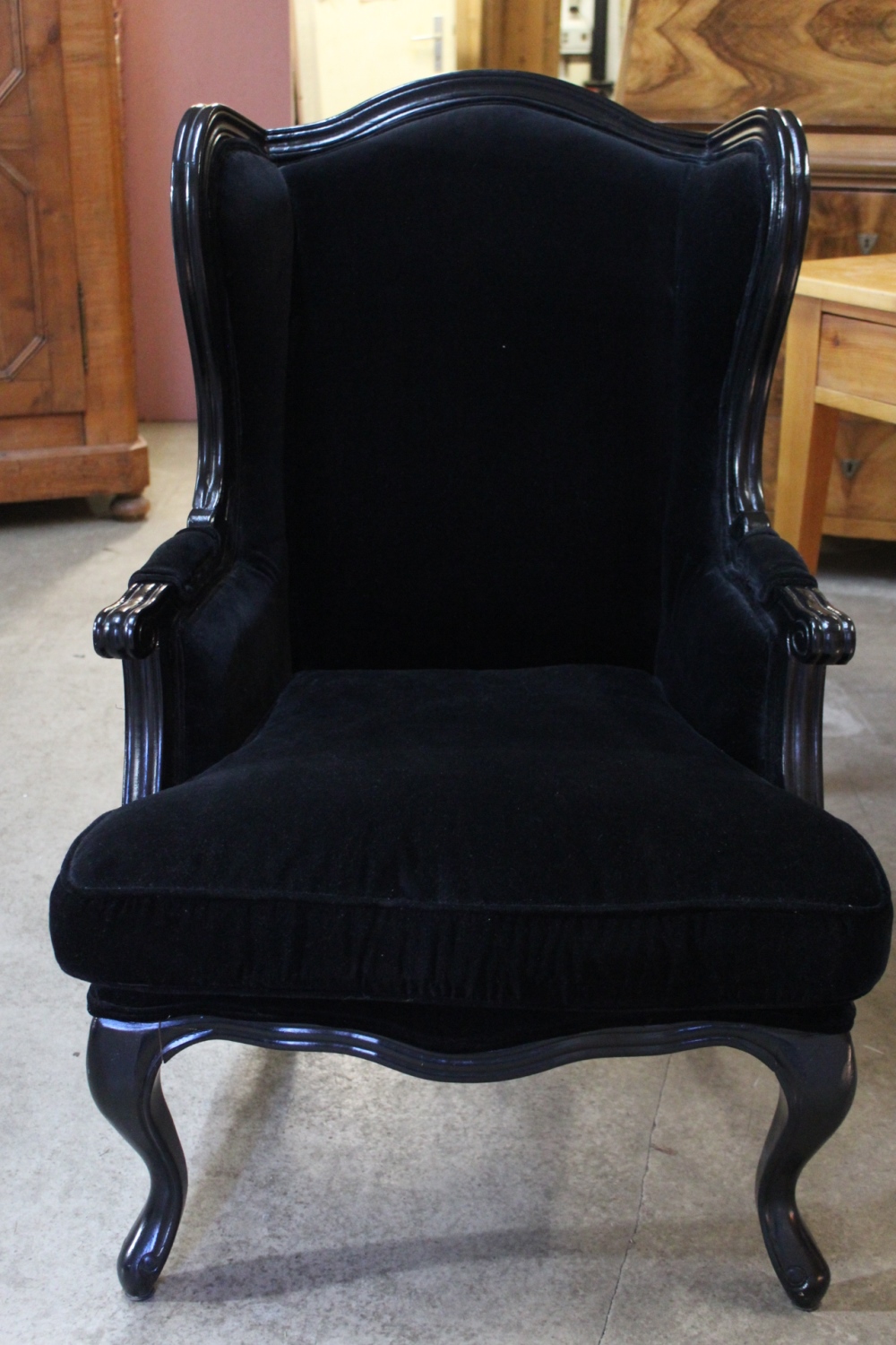 Schwarzer Polstersessel / Ohrensessel