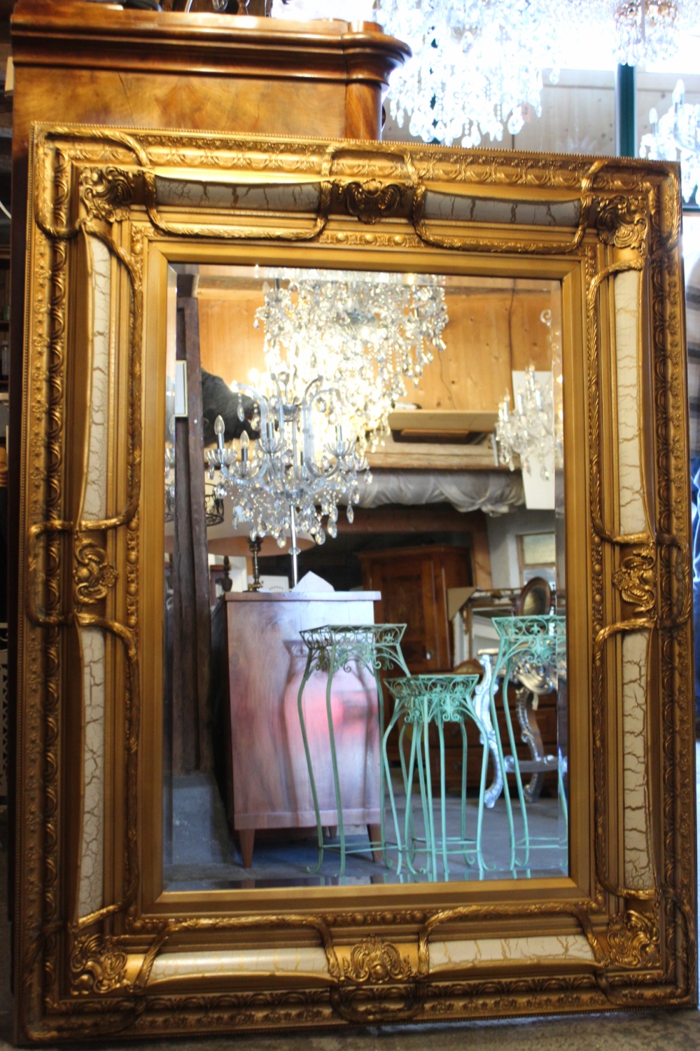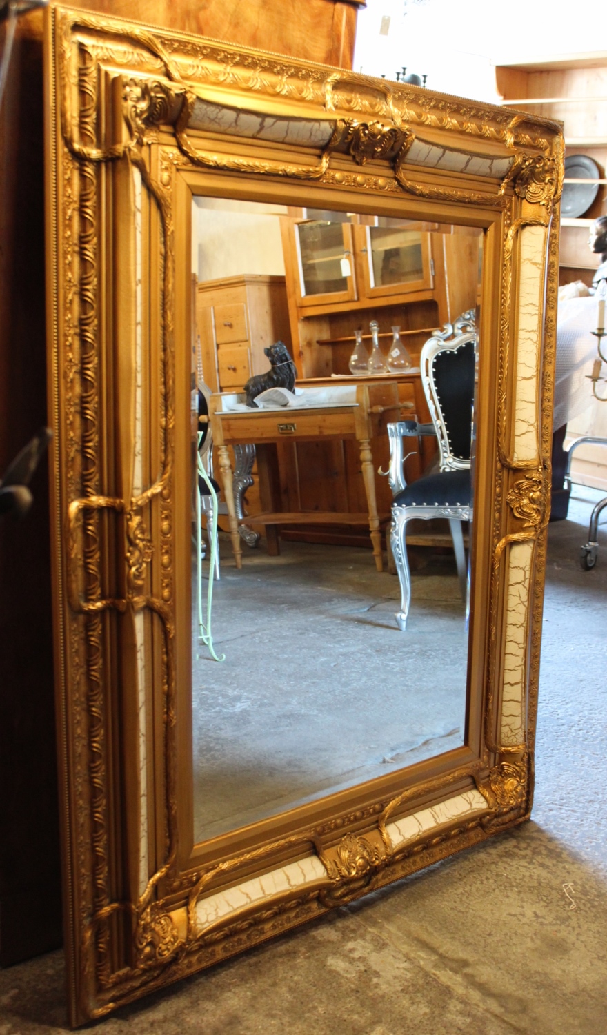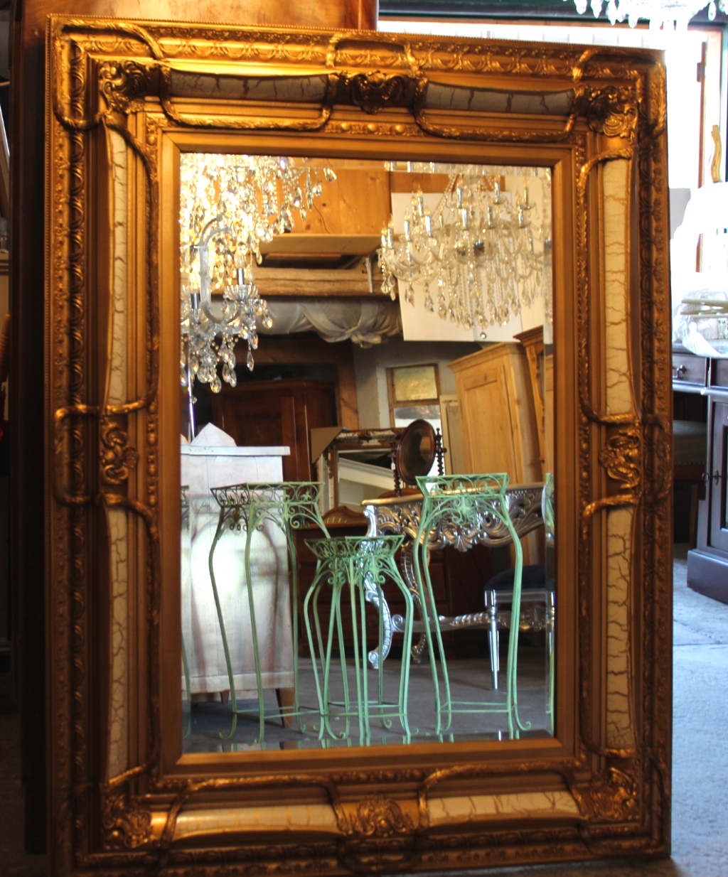 Barockspiegel Gold-Weiss mit Holzrahmen / 130 X 100