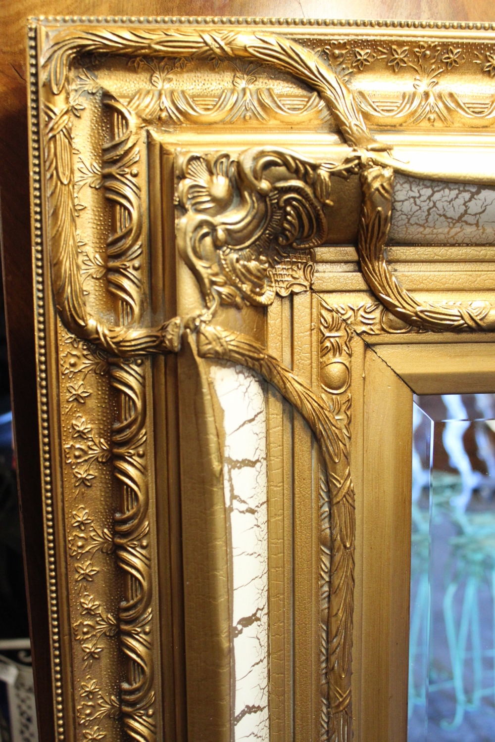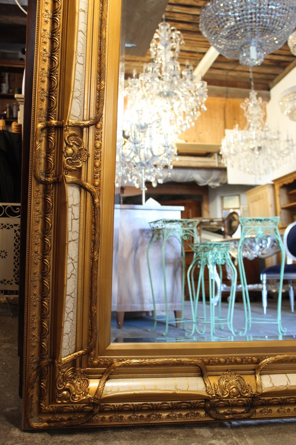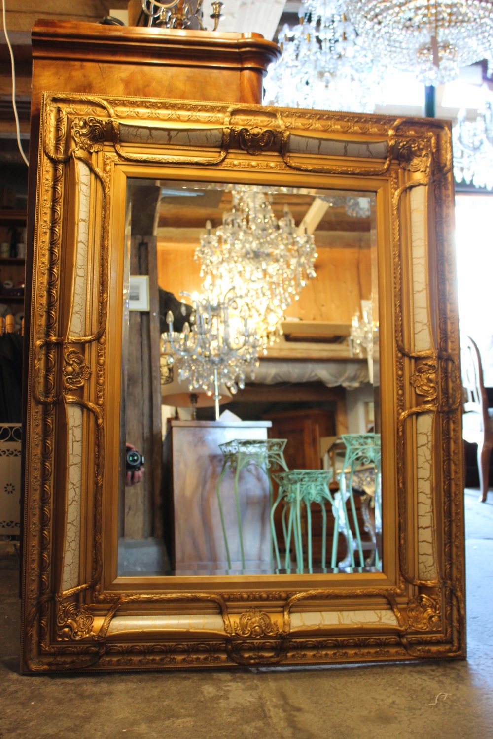 Barockspiegel Gold-Weiss mit Holzrahmen / 130 X 100