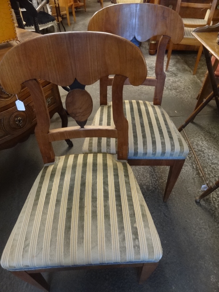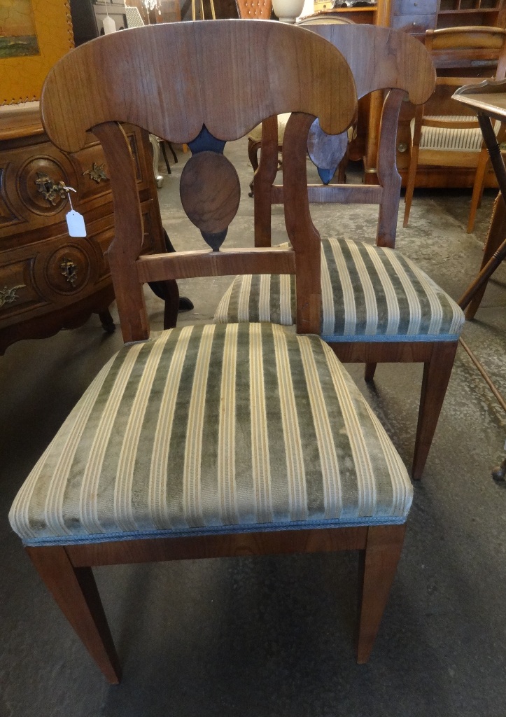 Antiker Stuhl / Biedermeierstuhlmassiv Nussbaum mit Polsterung
