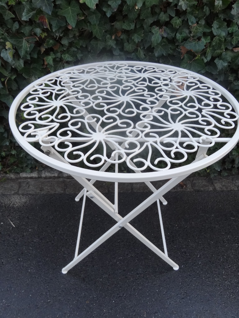Verschnörkelter Gartentisch Eisen, weiss(Klapptisch)
