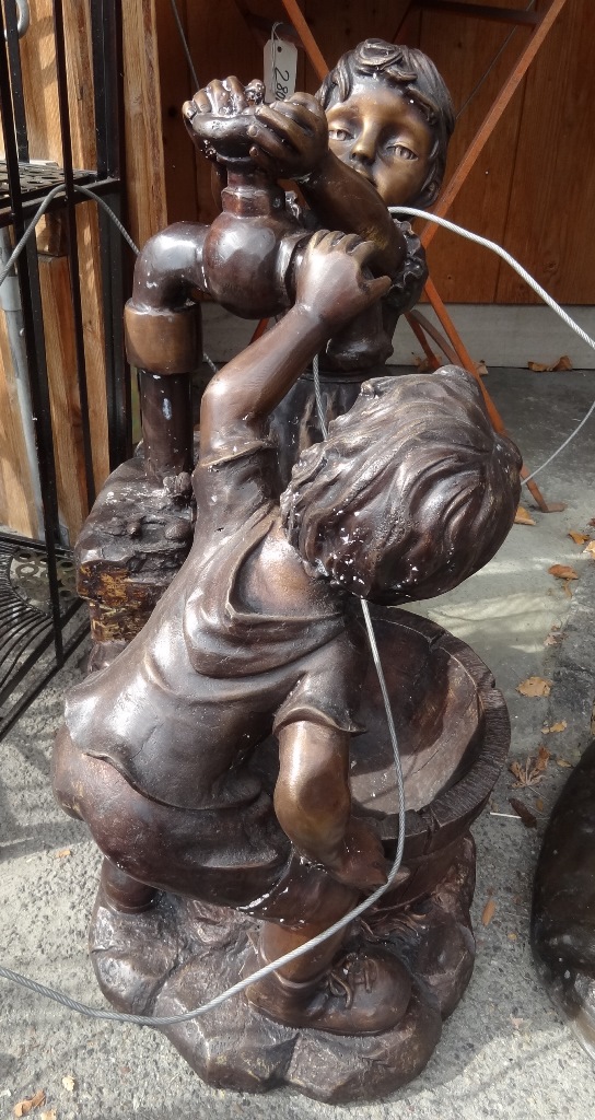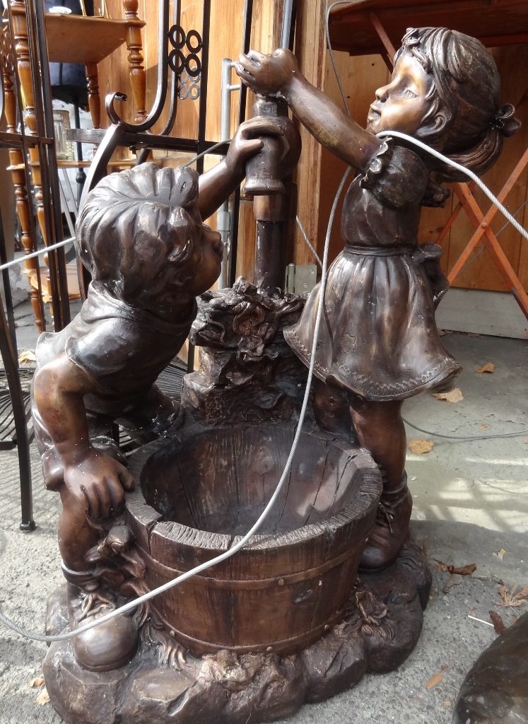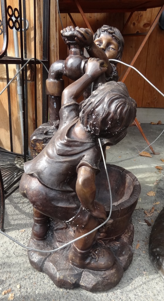 Bronzefigur Bronzeskulptur Brunnenmit zwei Kindern.