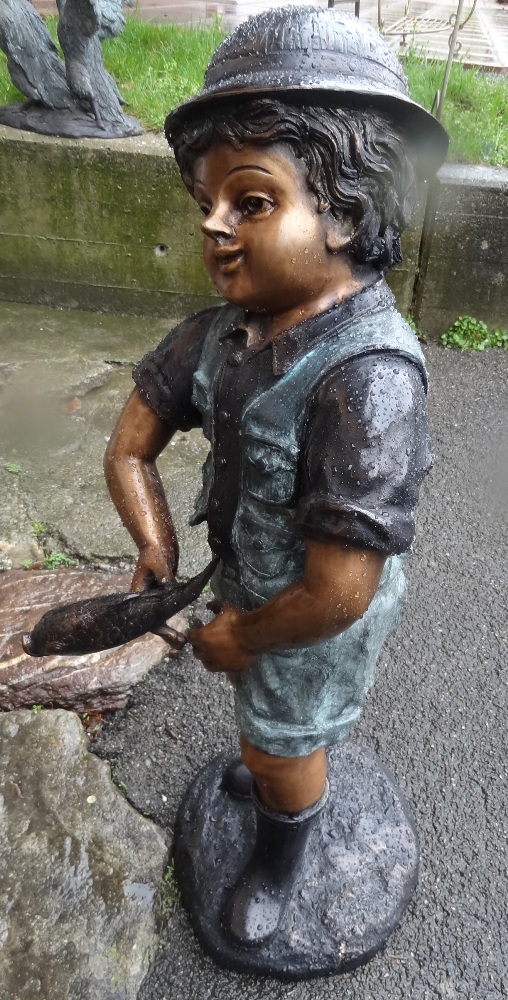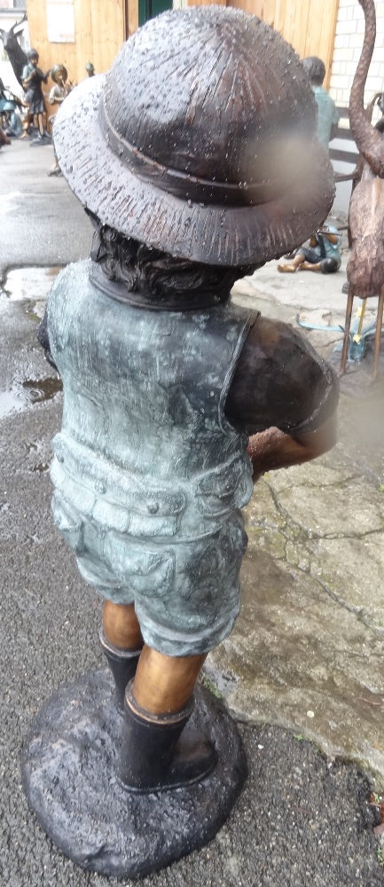 Bronzefigur Bub mit Fisch