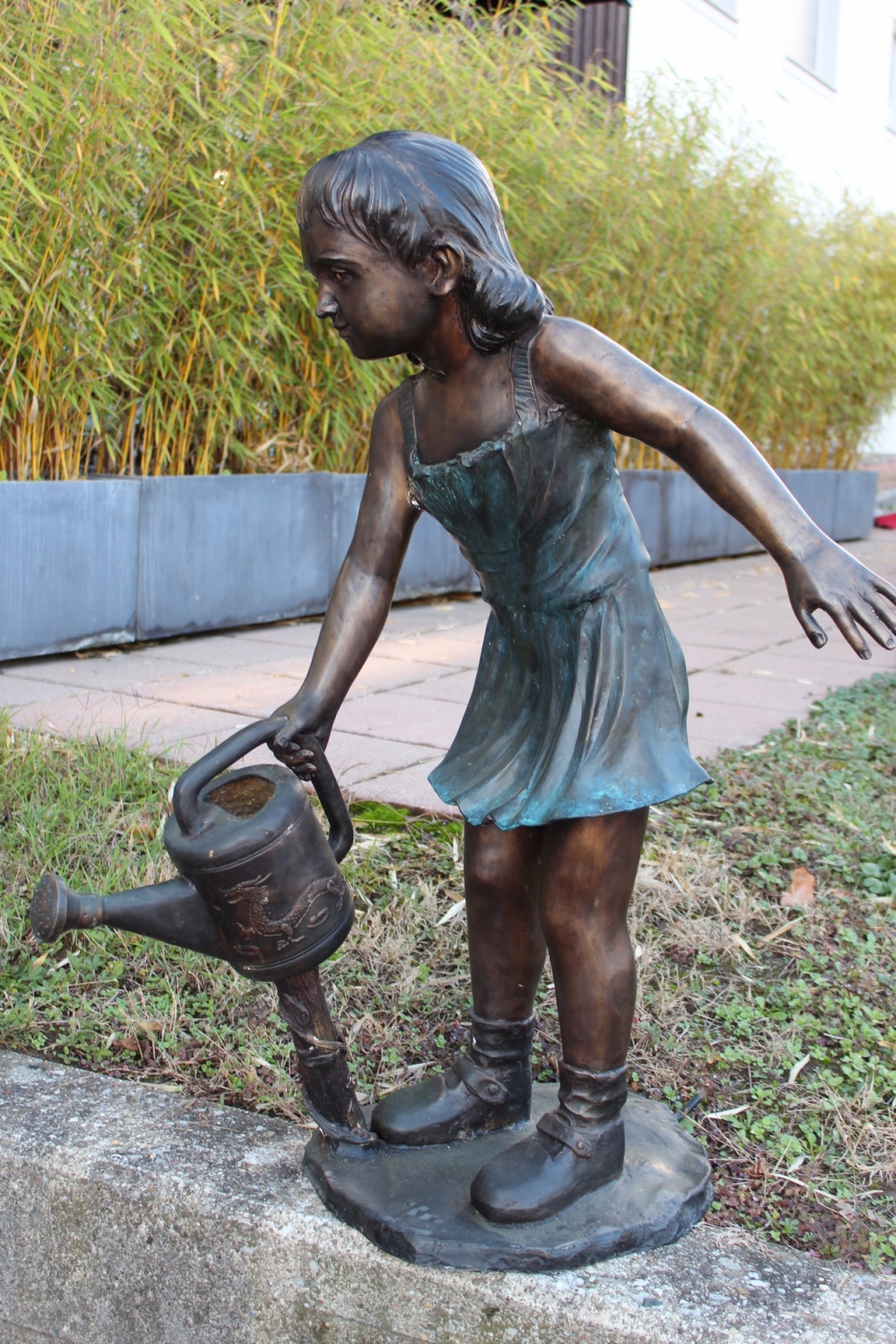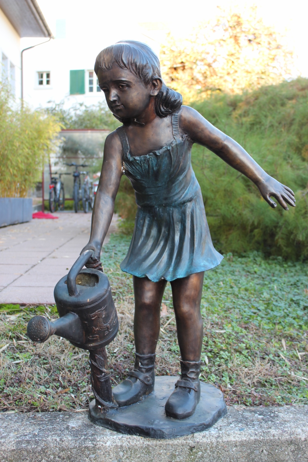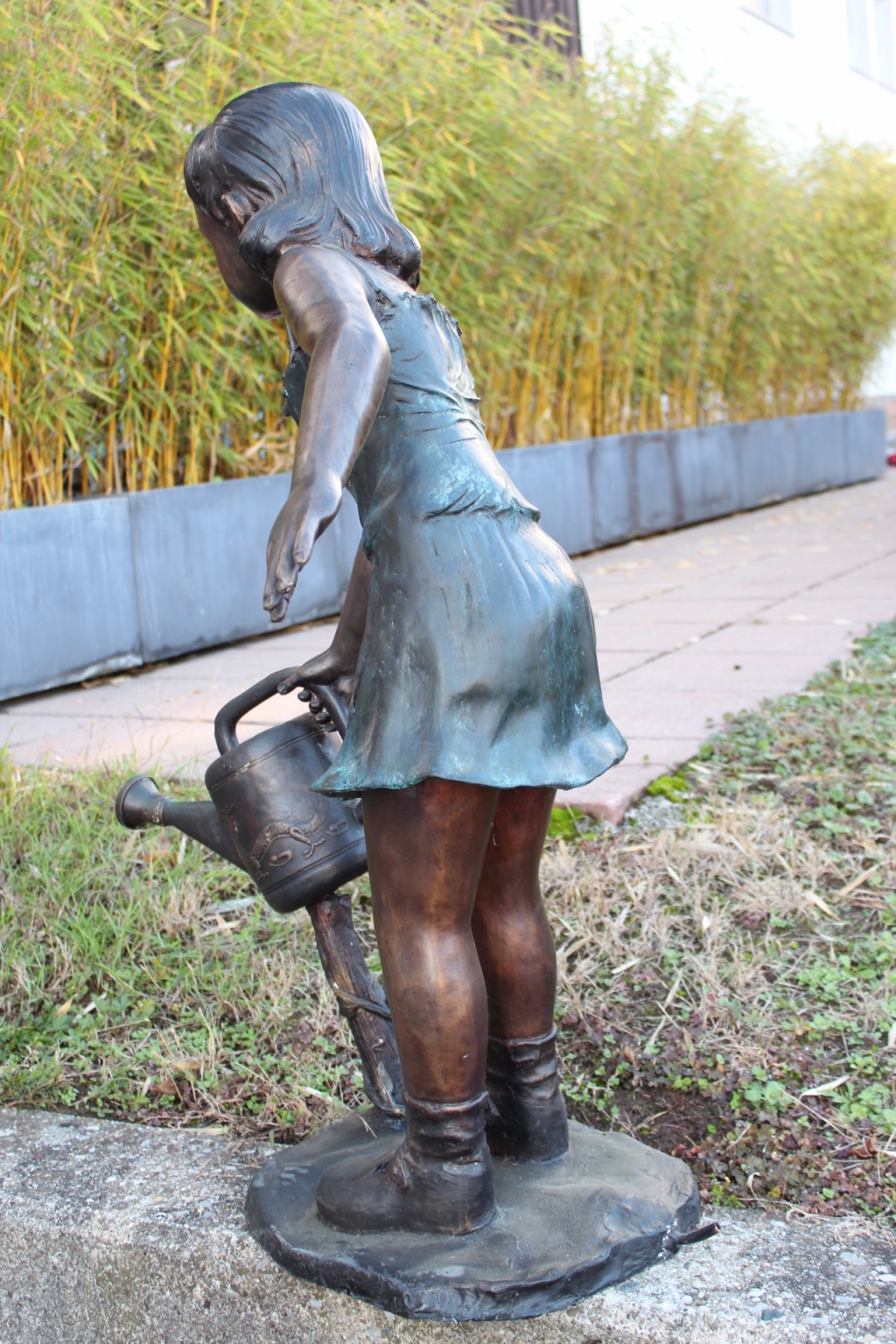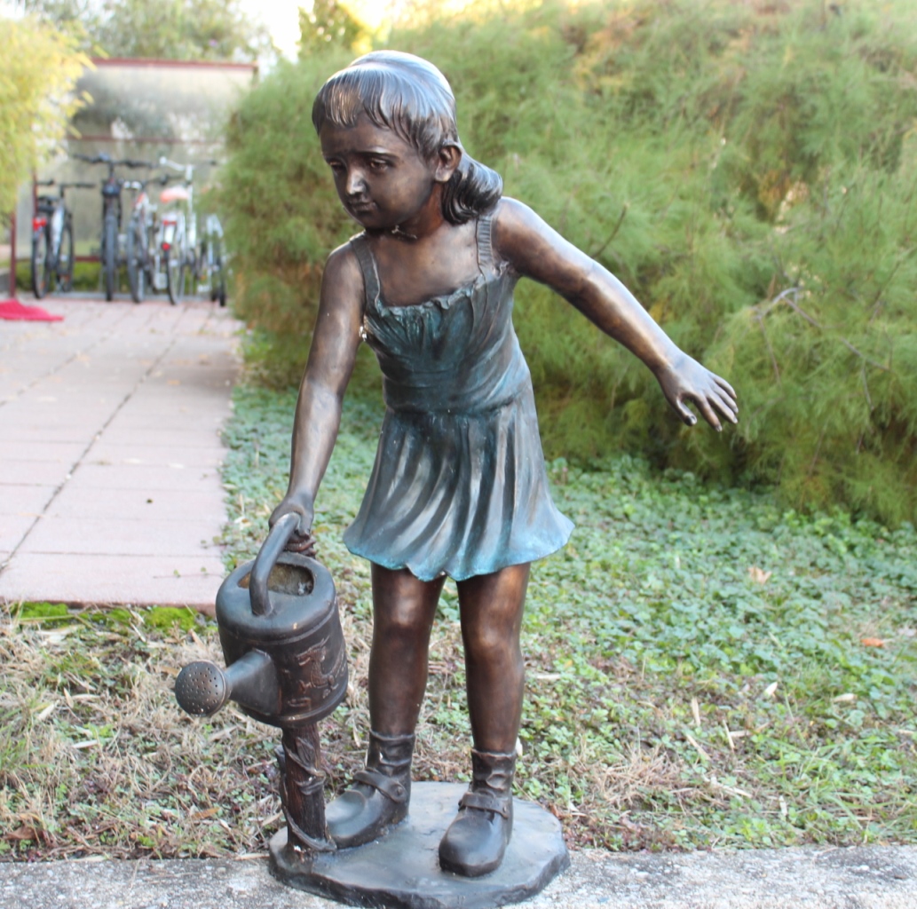 Bronzeskulptur Mädchen mit Spritzkanne / Wasseranschluss