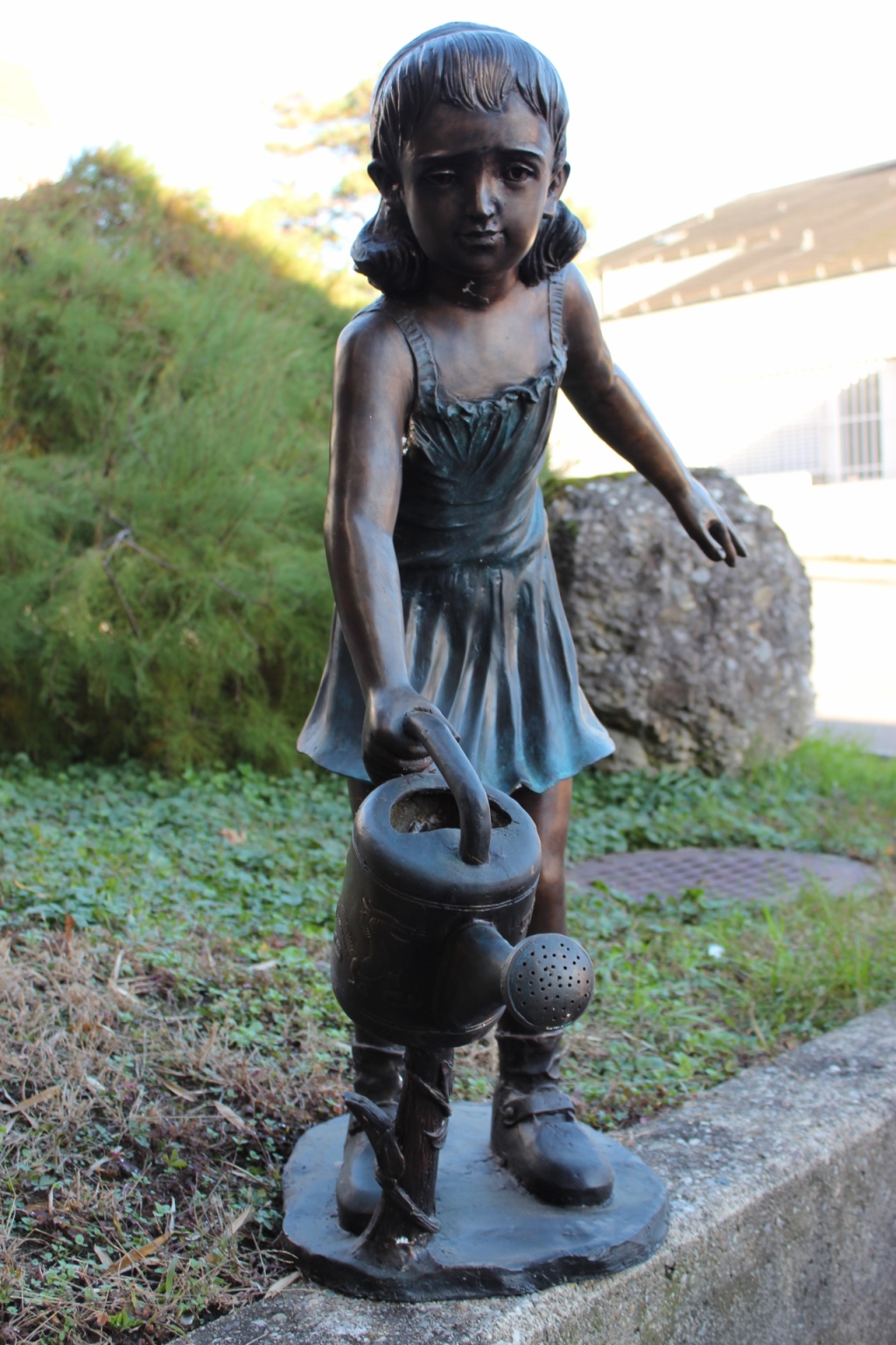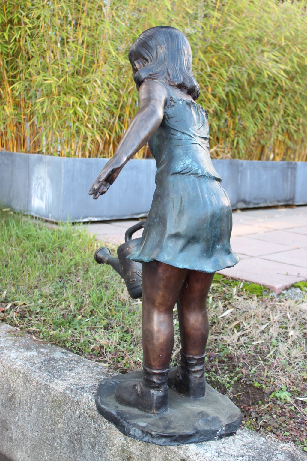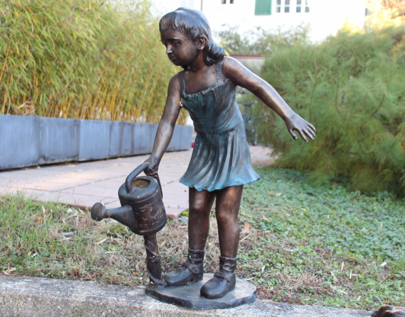 Bronzeskulptur Mädchen mit Spritzkanne / Wasseranschluss