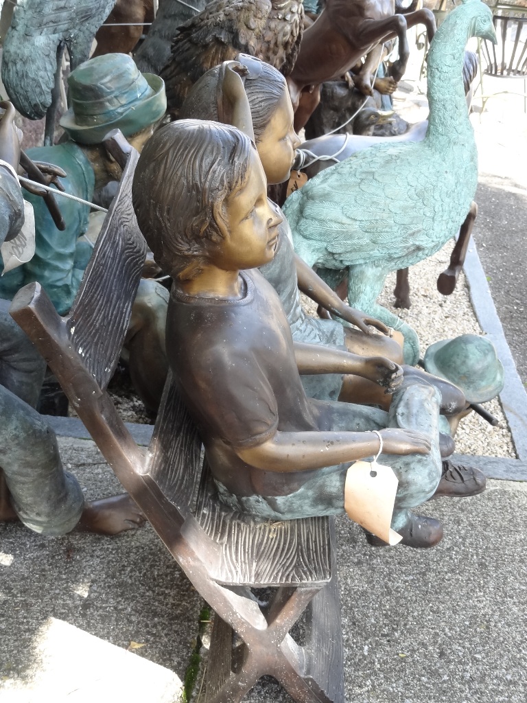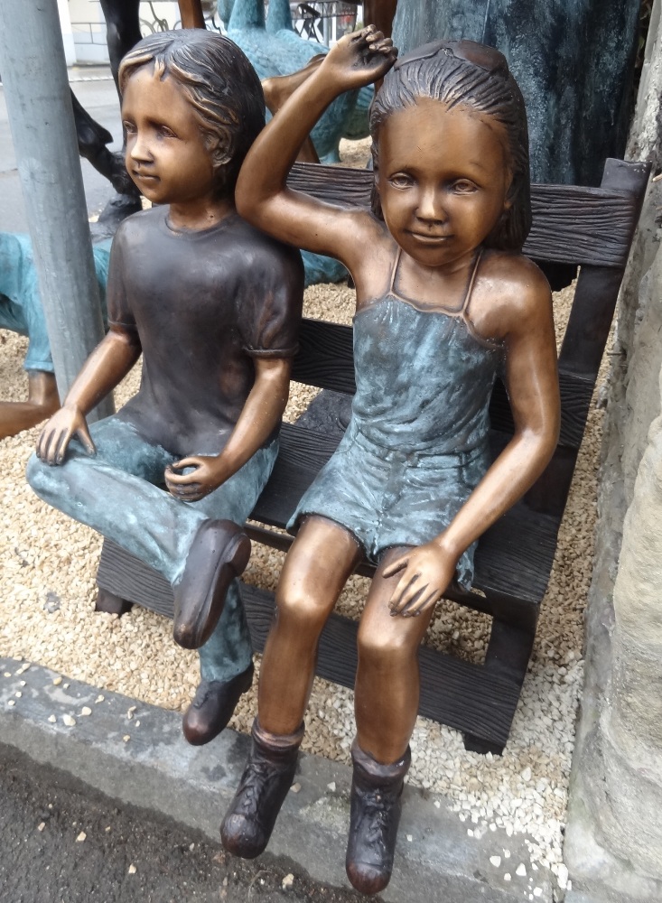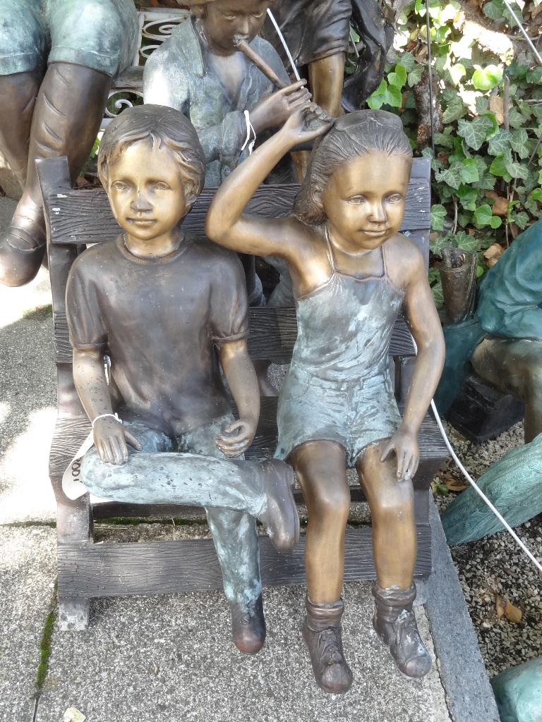 Bronzefigur Mädchen und Bub sitzend auf einer Bank.Gewicht 24kg