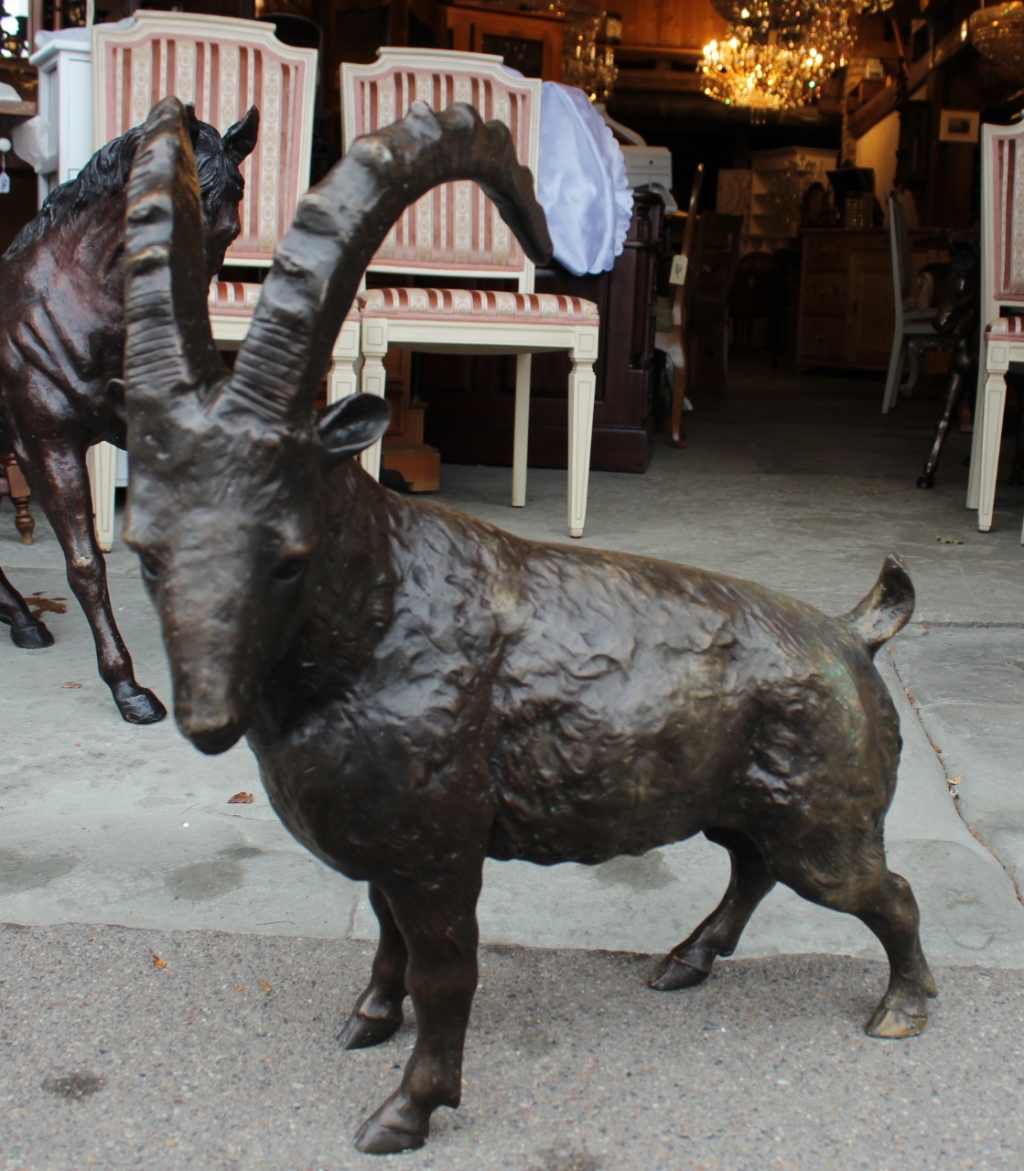 Bronzefigur / Bronzeskulpturfreistehender Steinbock.
