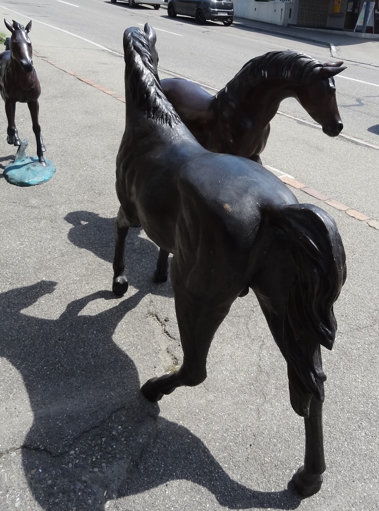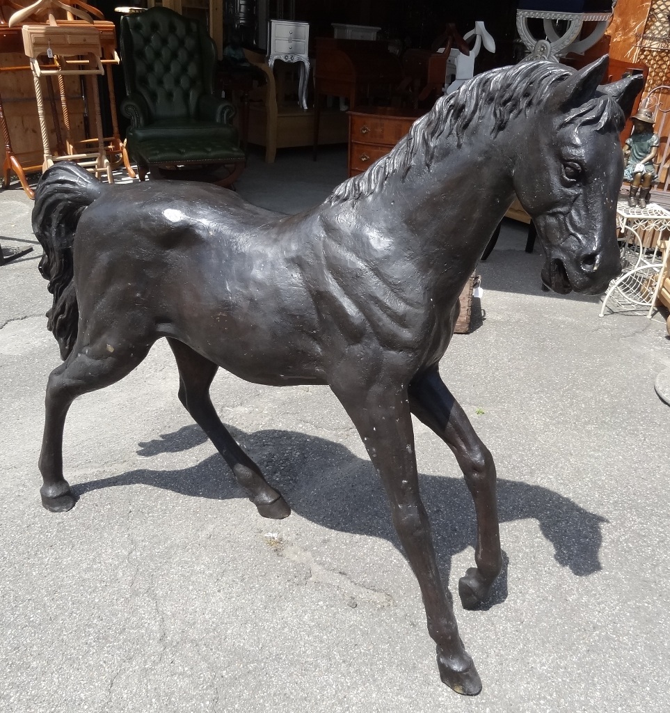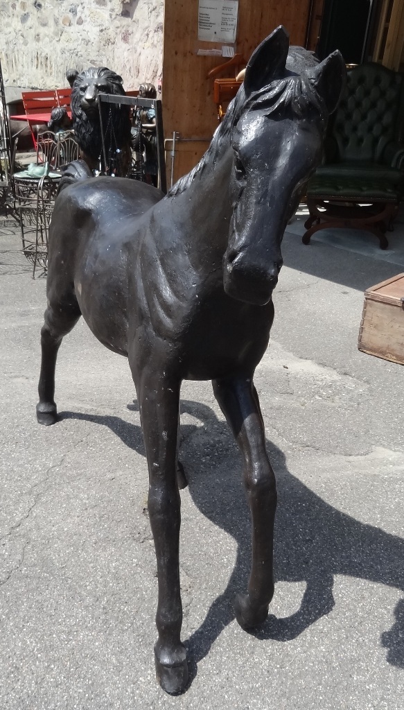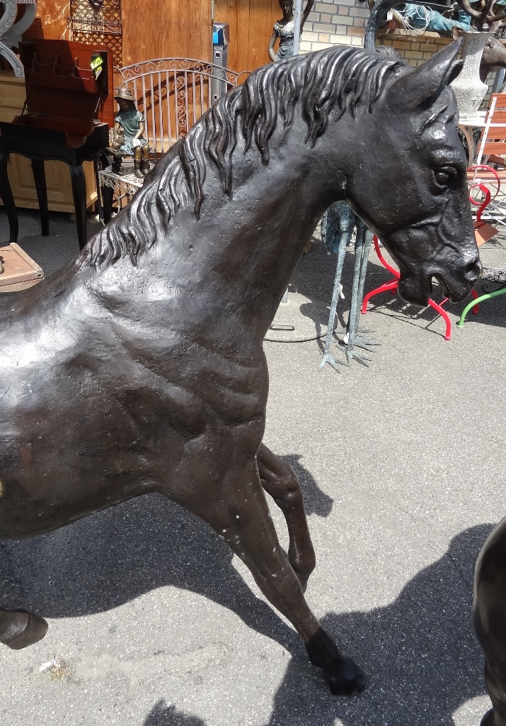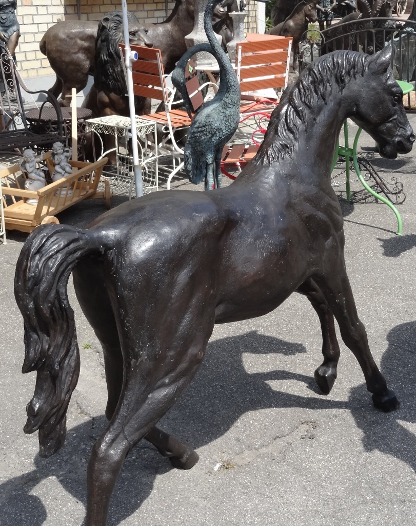 Bronzefigur galoppierendes Pferdmit ausdrucksvollem Gesicht.